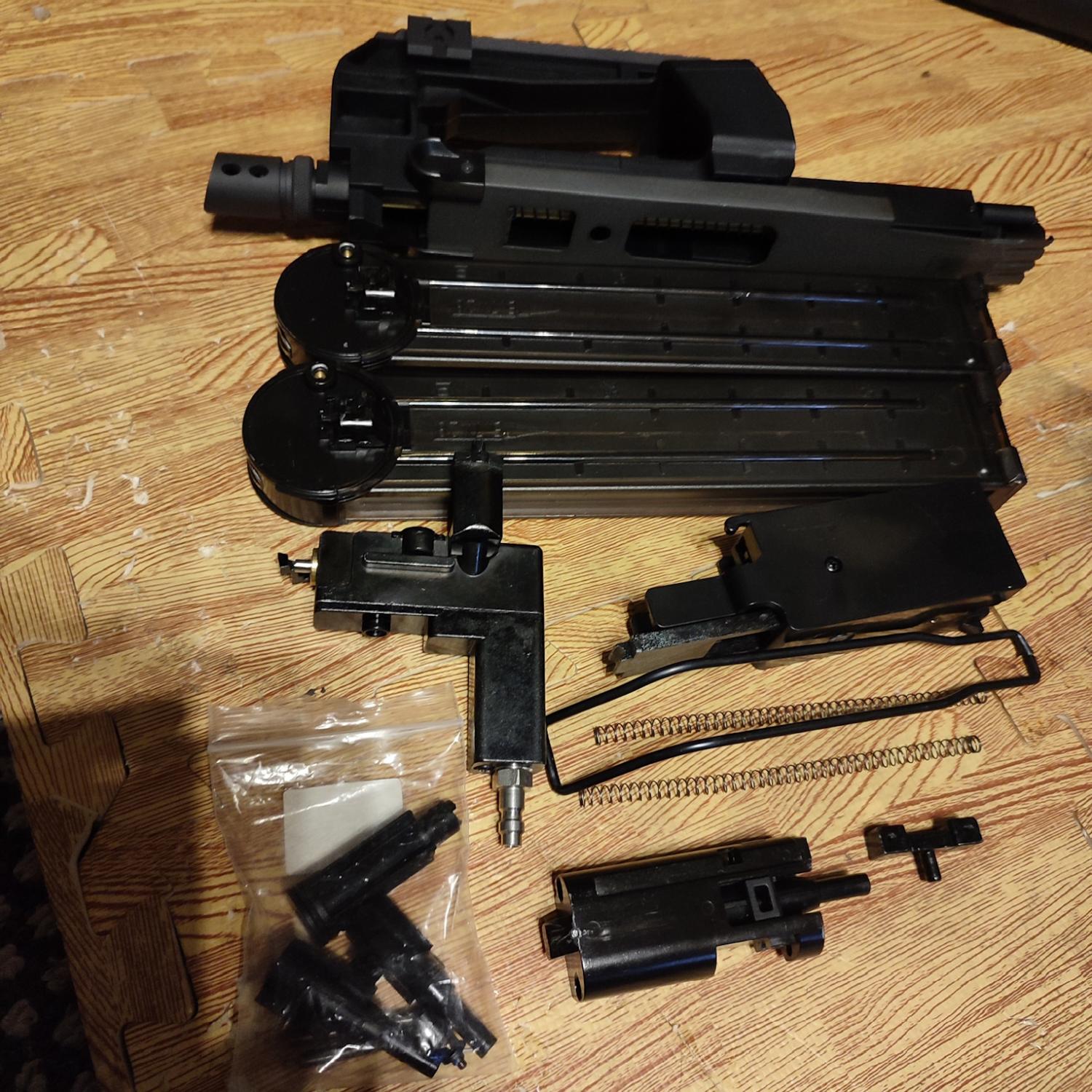 2 x gas magazines, spare nozzles and bolt section. Upper receiver/ handle and a tan body (possible damage. but usuable i think)