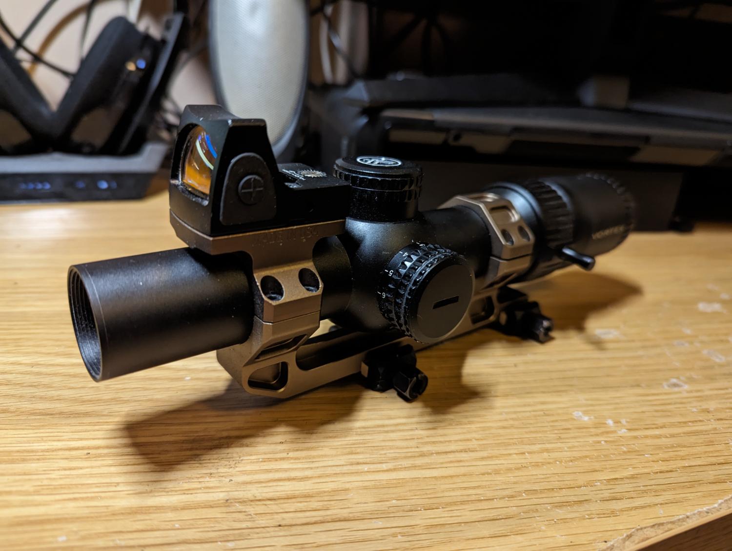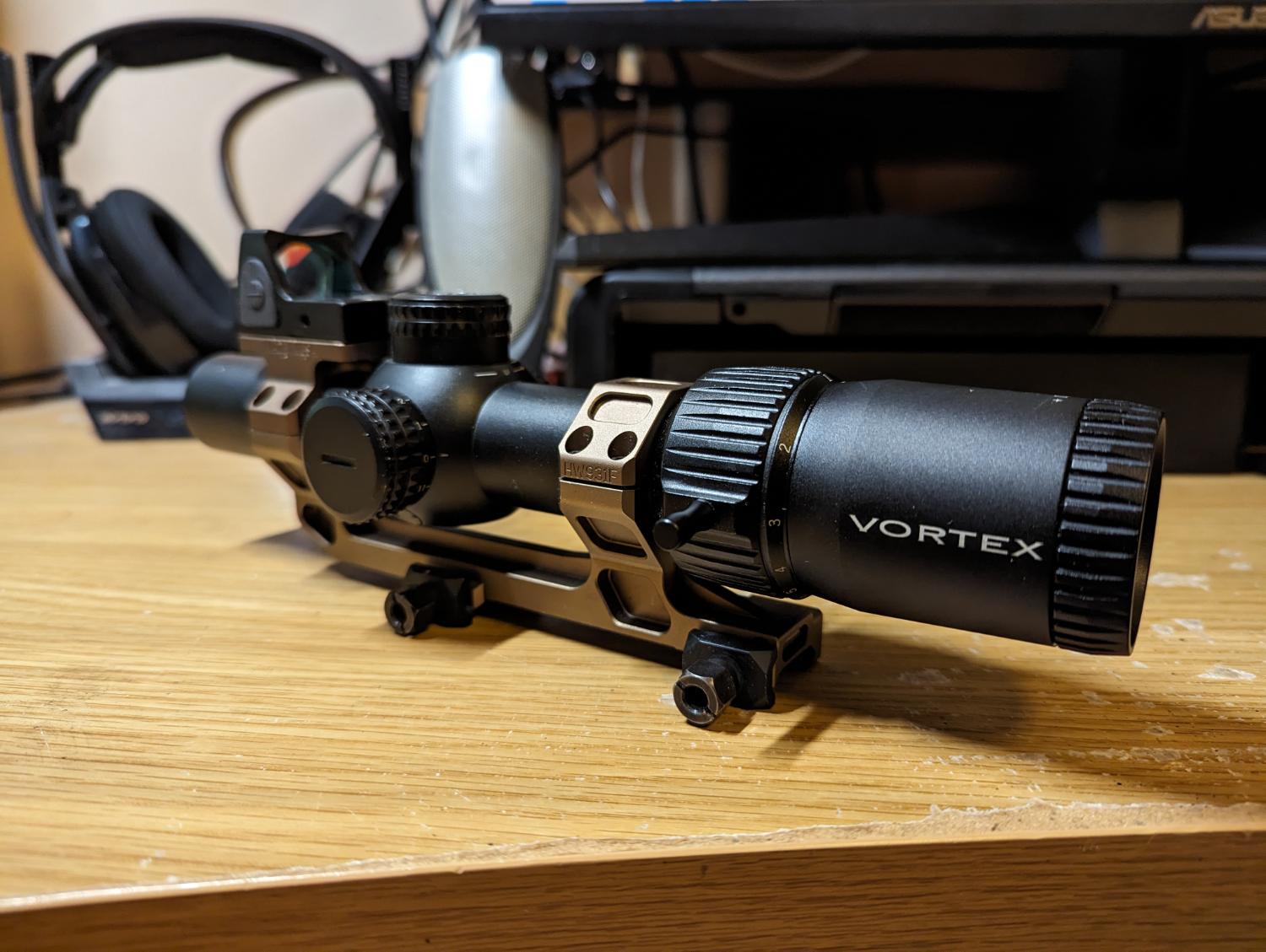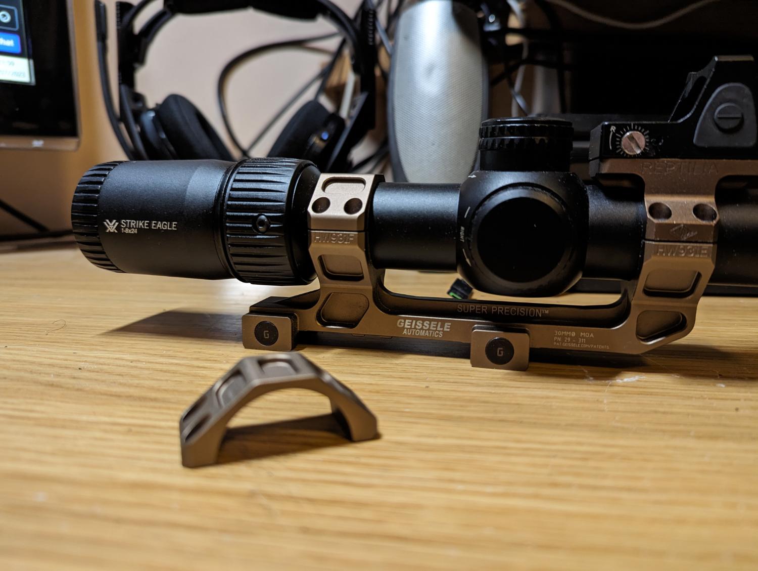 Genuine Vortex Strike Eagle variable scope, with Sotac RMR, repro geissele cantilever mount and kit for mounting the RMR or just the standalone scope.