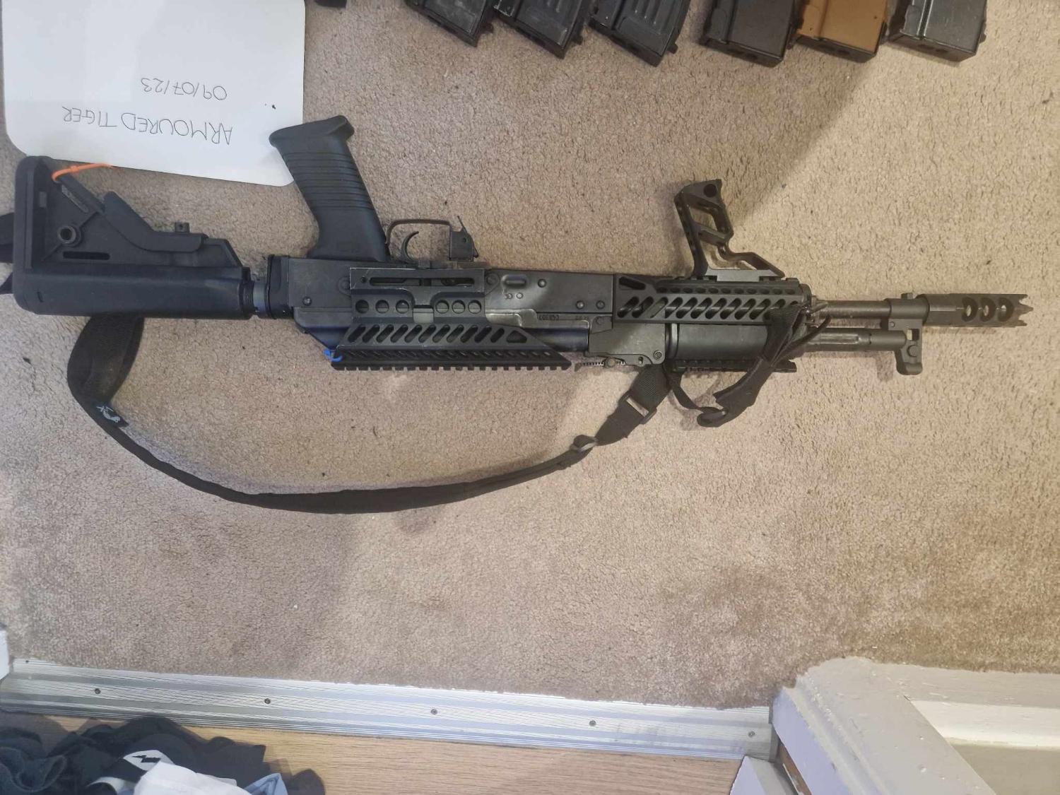 -Upgraded tightbore barrel, maple leaf hop rubber, spare fuse, 11.1v LiPo, shoots around 330fps .2's