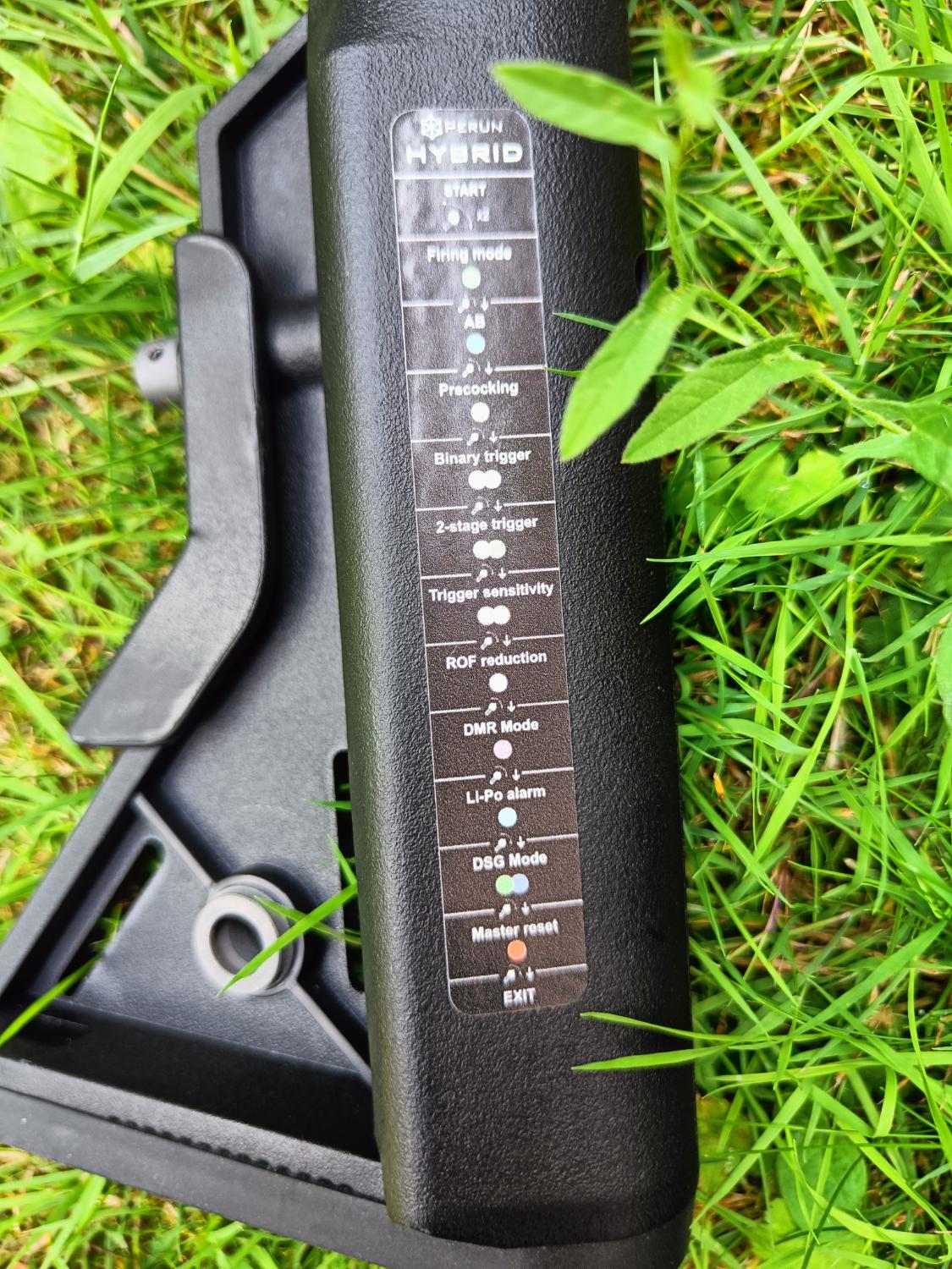Recently upgraded by Luke at Negative Airsoft. It was built to be a reliable, low stressed back-up gun. As such it's locked (on the Perun) to semi and in its current iteration shooting very consistently at just a smidge under 310FPS (on a 0.20g with the hop off). Also, it's worth noting that due to the ASG Ultimate Gearbox casing, this no-longer has a quick change spring, on the plus side it's much higher quality than the stock one.