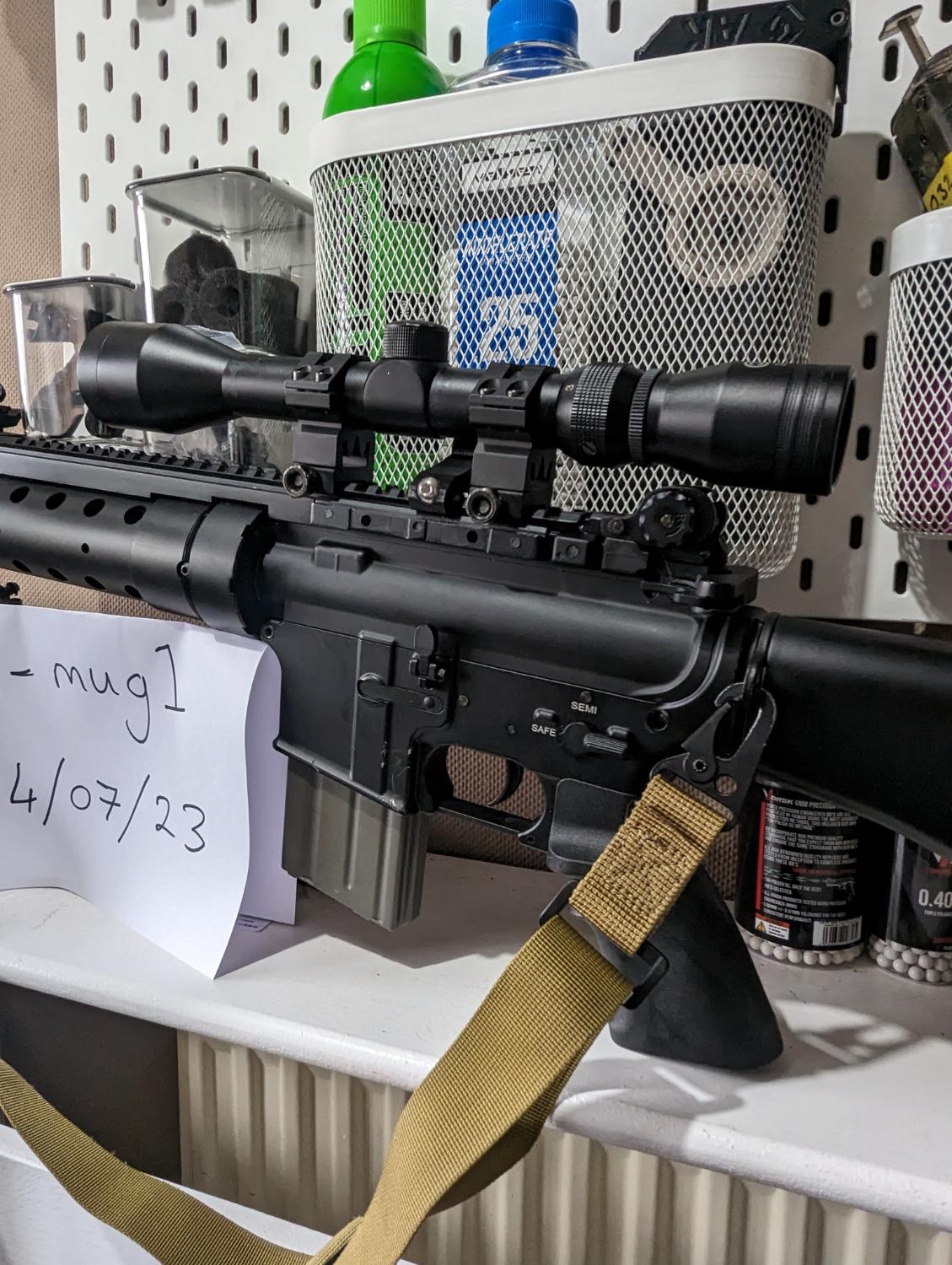 I build this puppy up and used at a couple sites as a DMR but didn't fit my playstyle, which means it's very good condition. I've done a fair bit of work to it to make it a good DMR so drop me a message for more specifications. I ran it on 0.4gs bullets and got 1.5 joules out of it.