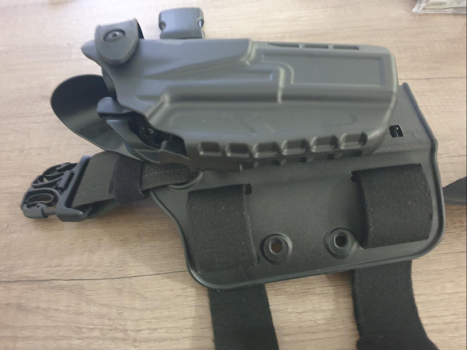 In good used condition. Right handed. The holster has been sanded inside at the muzzle end to accept a Umarex / VFC Glock 17 gen 4 with less resistance, however it's still a snug fit. It's a great holster only selling as I'm using a TM Hi Capa now.