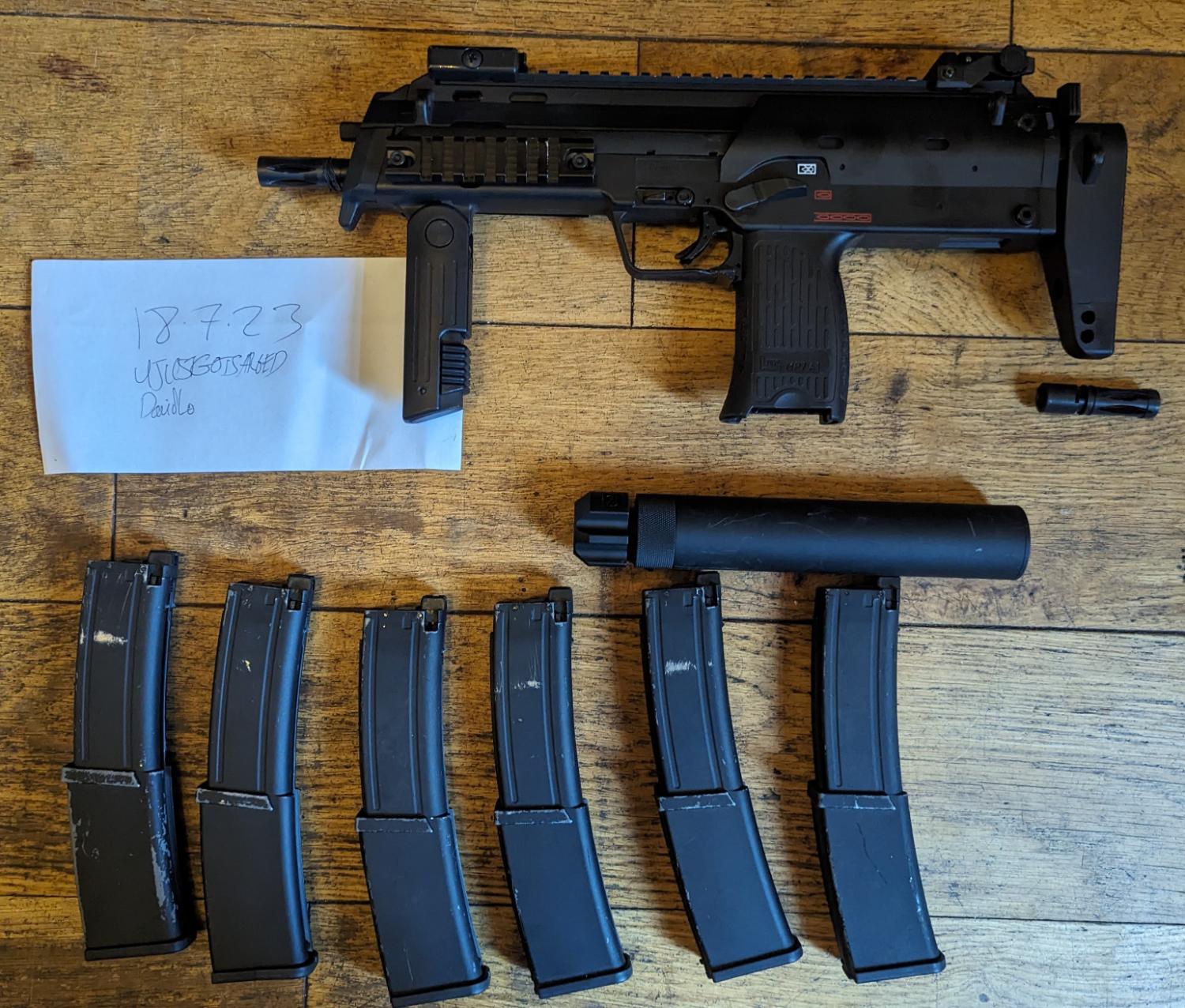 Vfc gbb mp7, perfect working order. Both semi and full auto work great. Internally stock, but fantastic range for how short the barrel is (50-60m), shooting around 325fps, gas and weather dependent, but regulated to 1J.