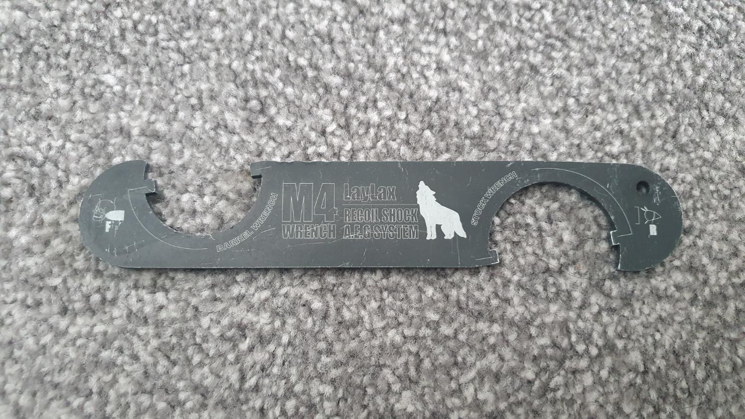 Laylax steel armourers wrench to fit the barrel and stock nuts on NGRS M4 variants.