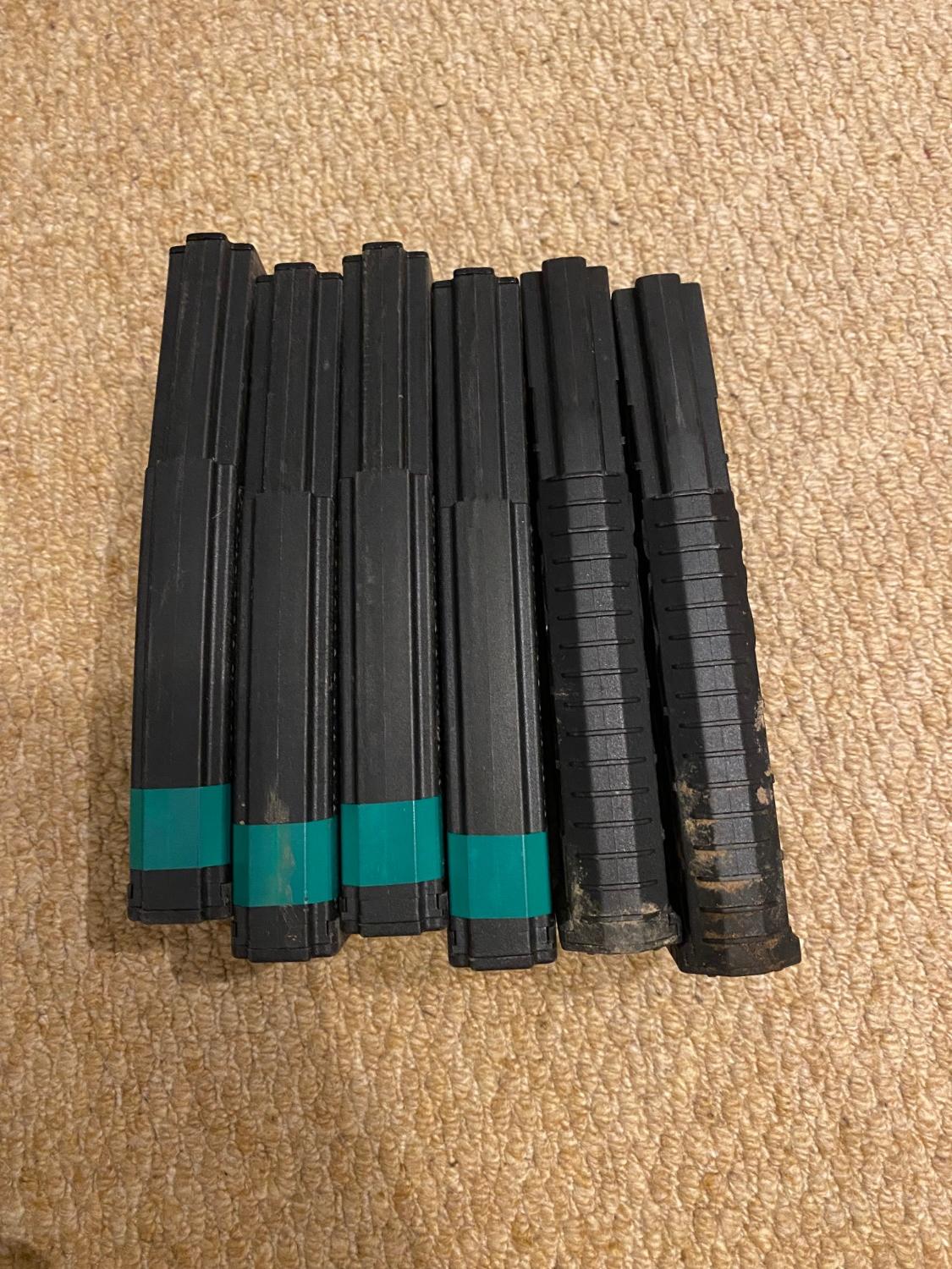 2 mags on the right are nuprol hex mags, work flawlessly, never jam and hold around 110 rounds last time I counted.