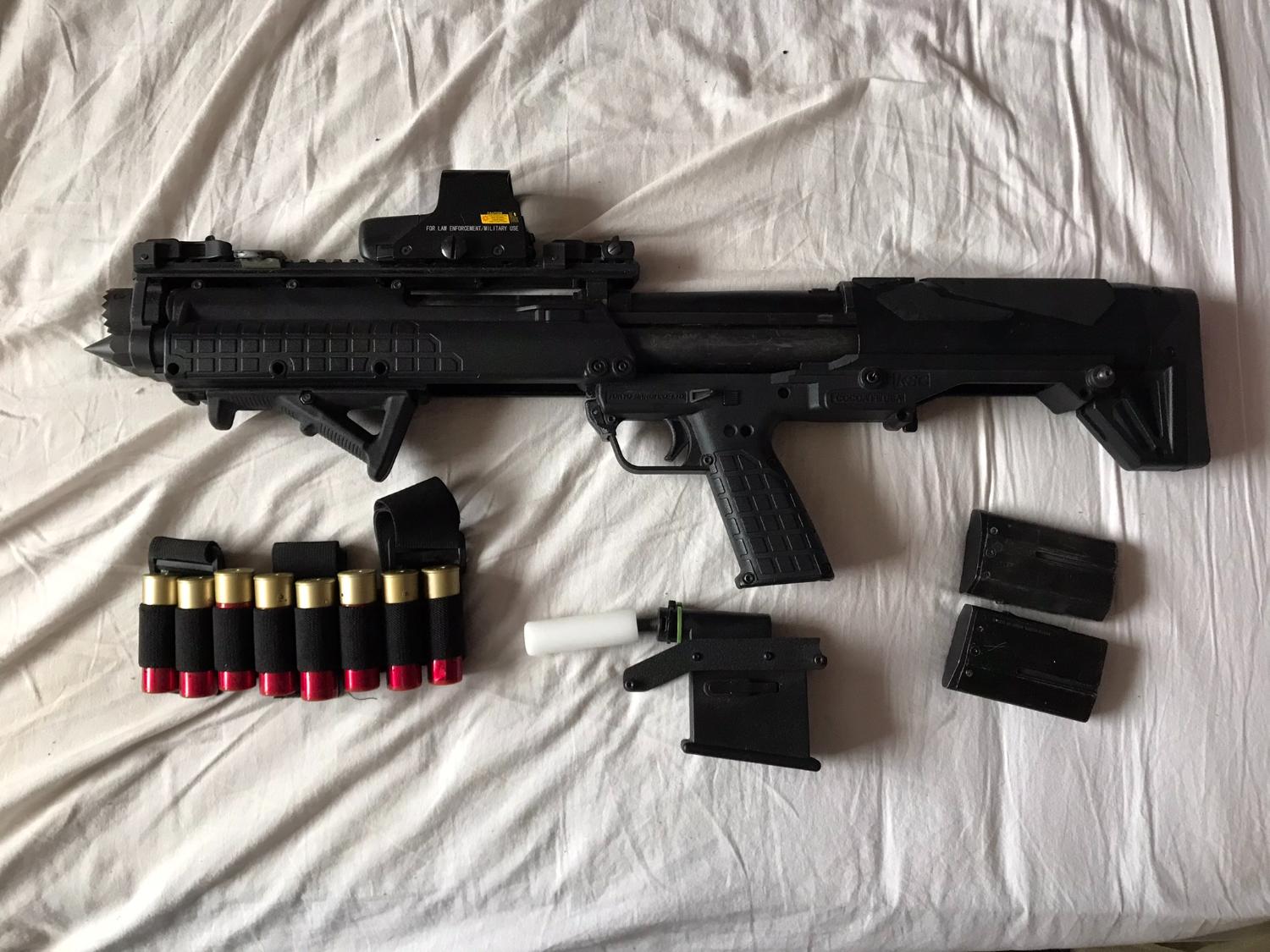 Selling this lightly used TM KSG. I purchased this a while ago on the forums but never saw much use out of it. It has a door breaching kit at the front with the spikes dulled.