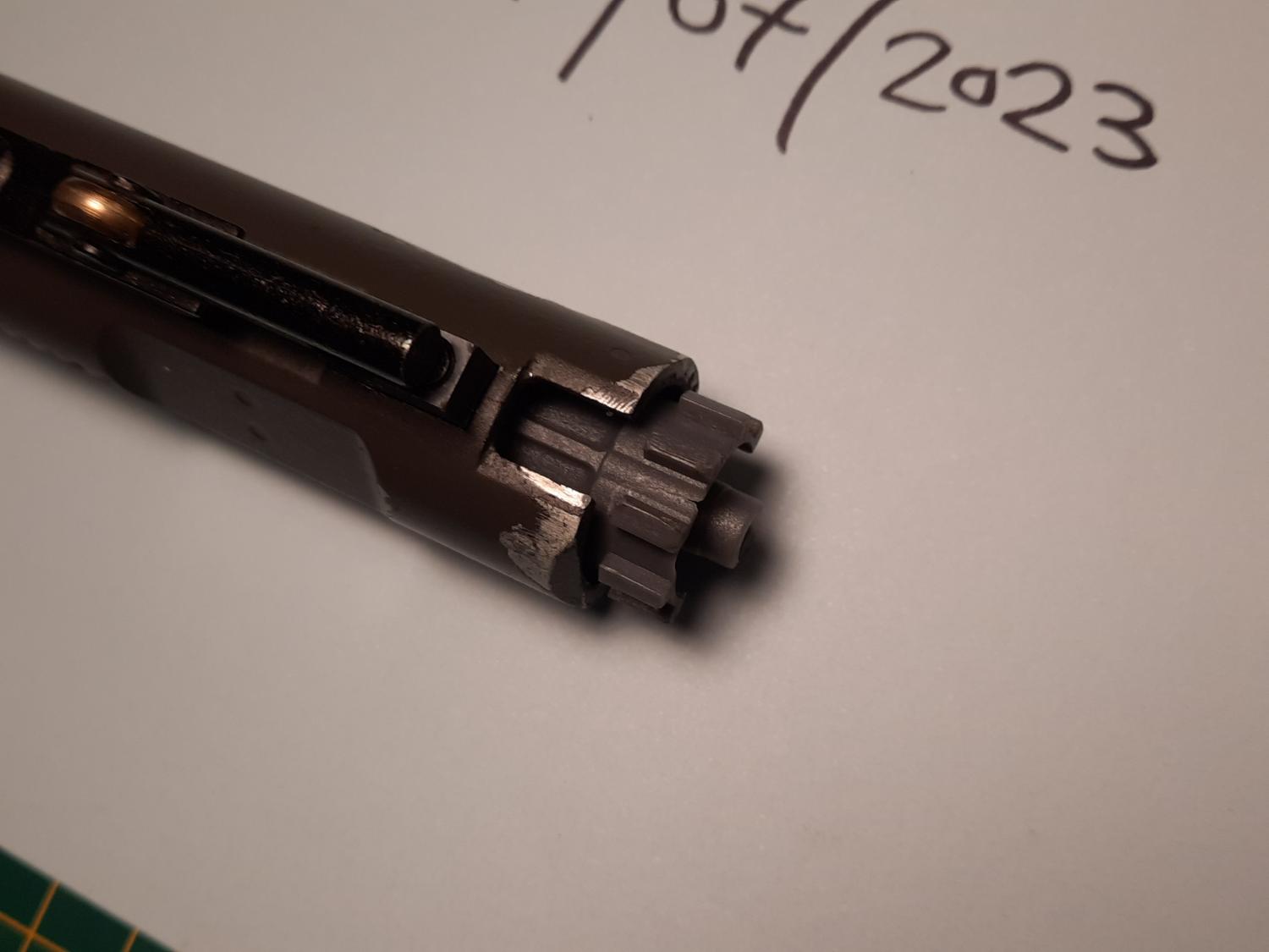 Half of the bolt catch mounting point has broken off though it still retains the bolt catch and functions correctly.