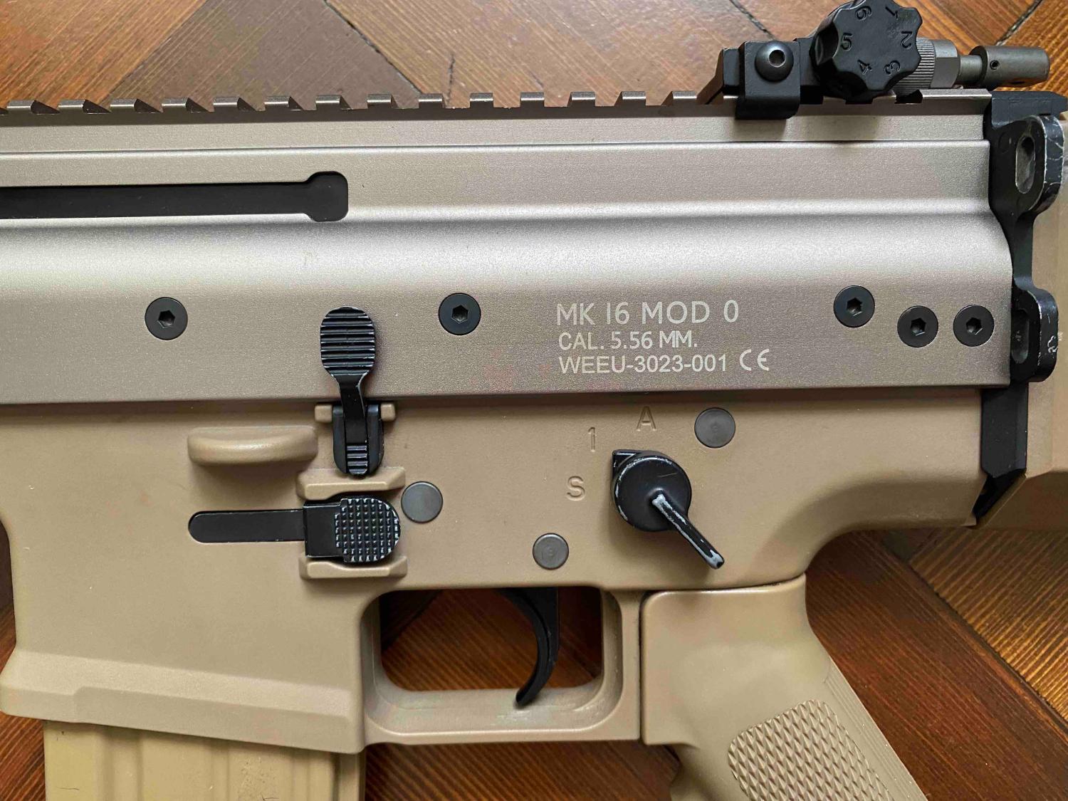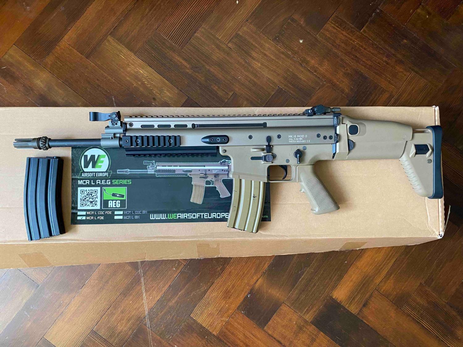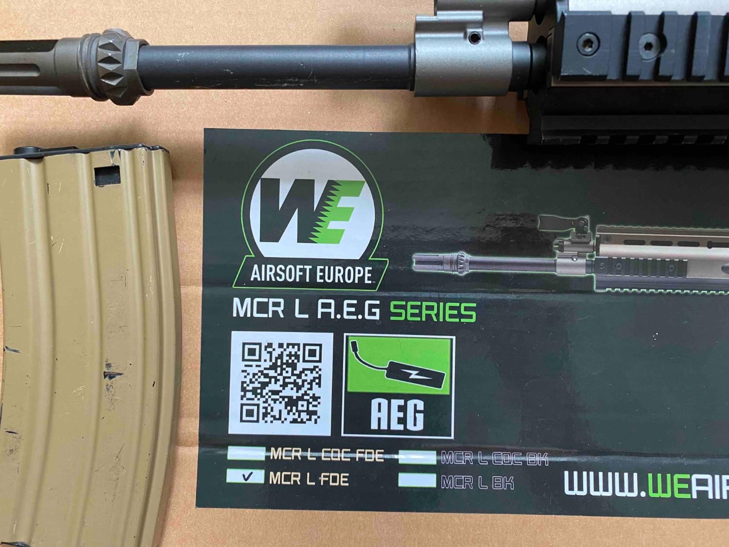 This is a WE MCR L AEG series. Although it's NBB, the kick is very strong while firing, either single or auto.