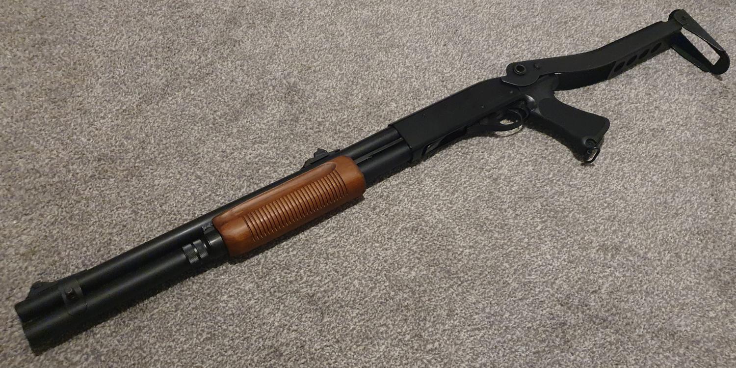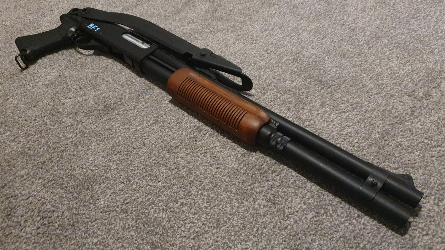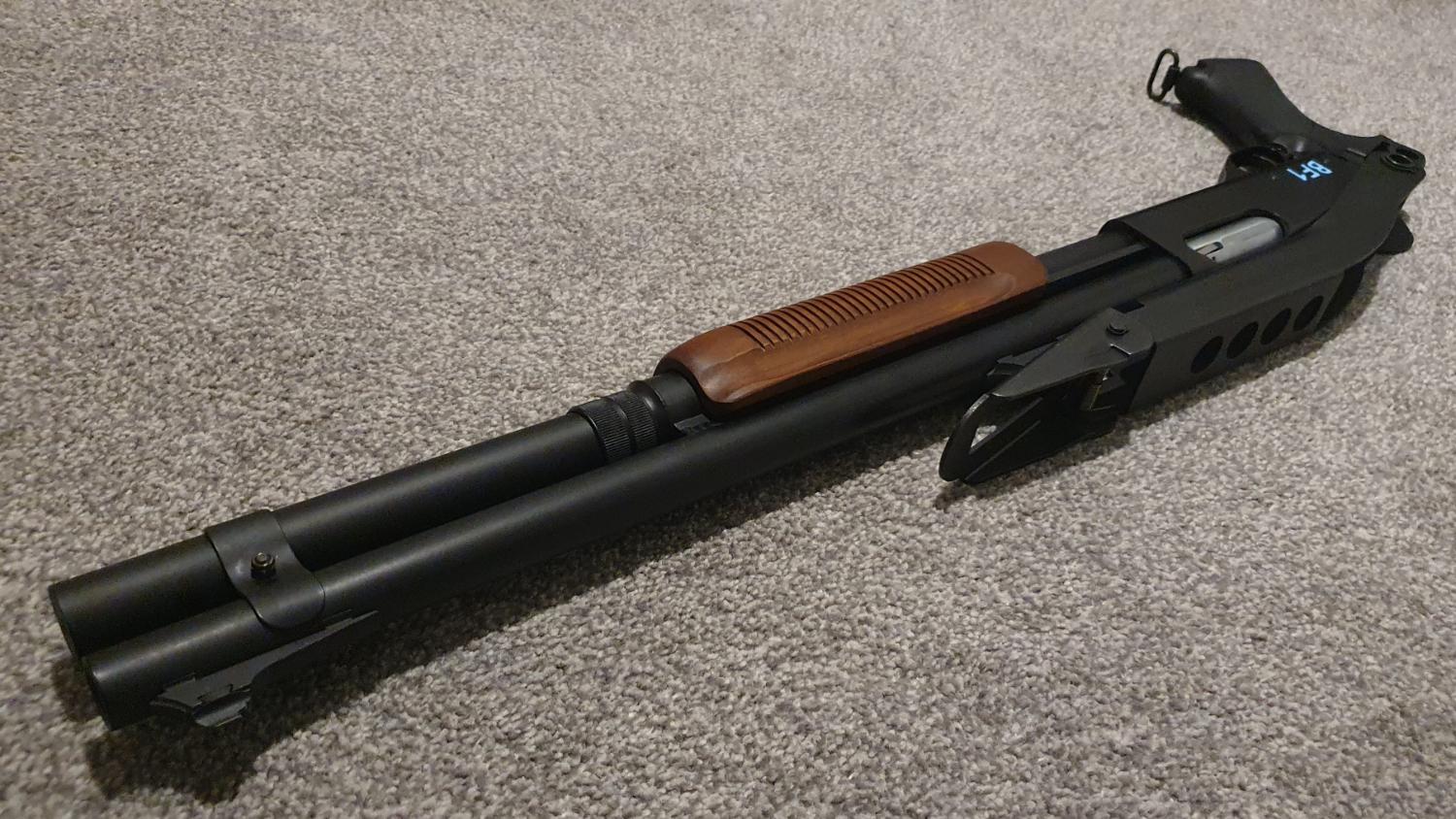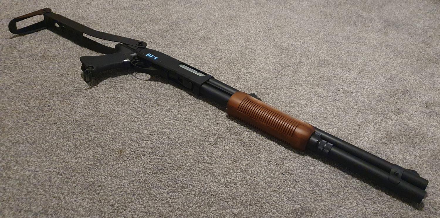 Cam870 'L74A1' build, body is a MKII, with G&P steel folding stock, APS magazine tube extension, APS real wood forend and is fitted with the MKIII bolt which uses CO2 stored in the shells, NOT the bolt like previously.