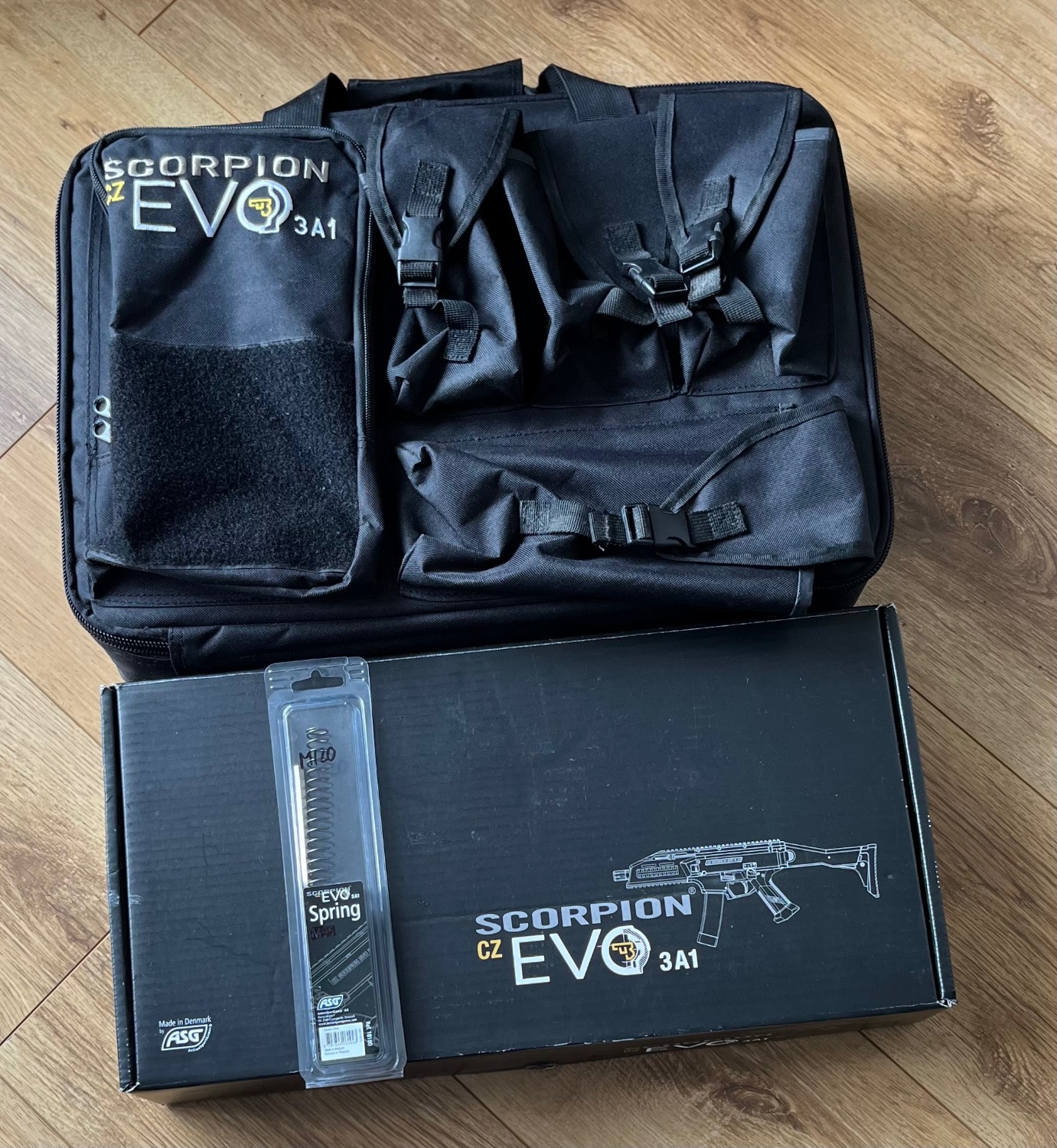 .ASG CZ Scorpion EVO 3 A1 - 2020 Model with deans connector with one genuine ASG Mag RRP £335 less 40% = £201 - with original and upgraded 120 spring(foc) - apart from the spring it’s stock.