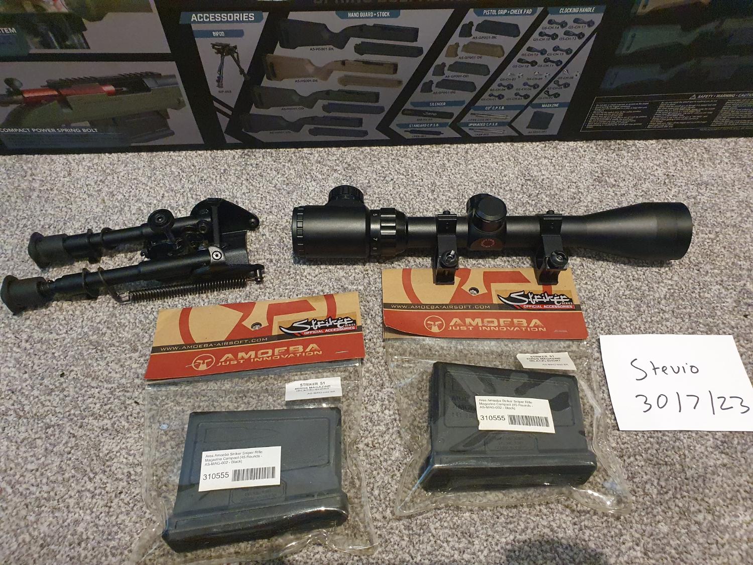 2 mags, scope and bipod