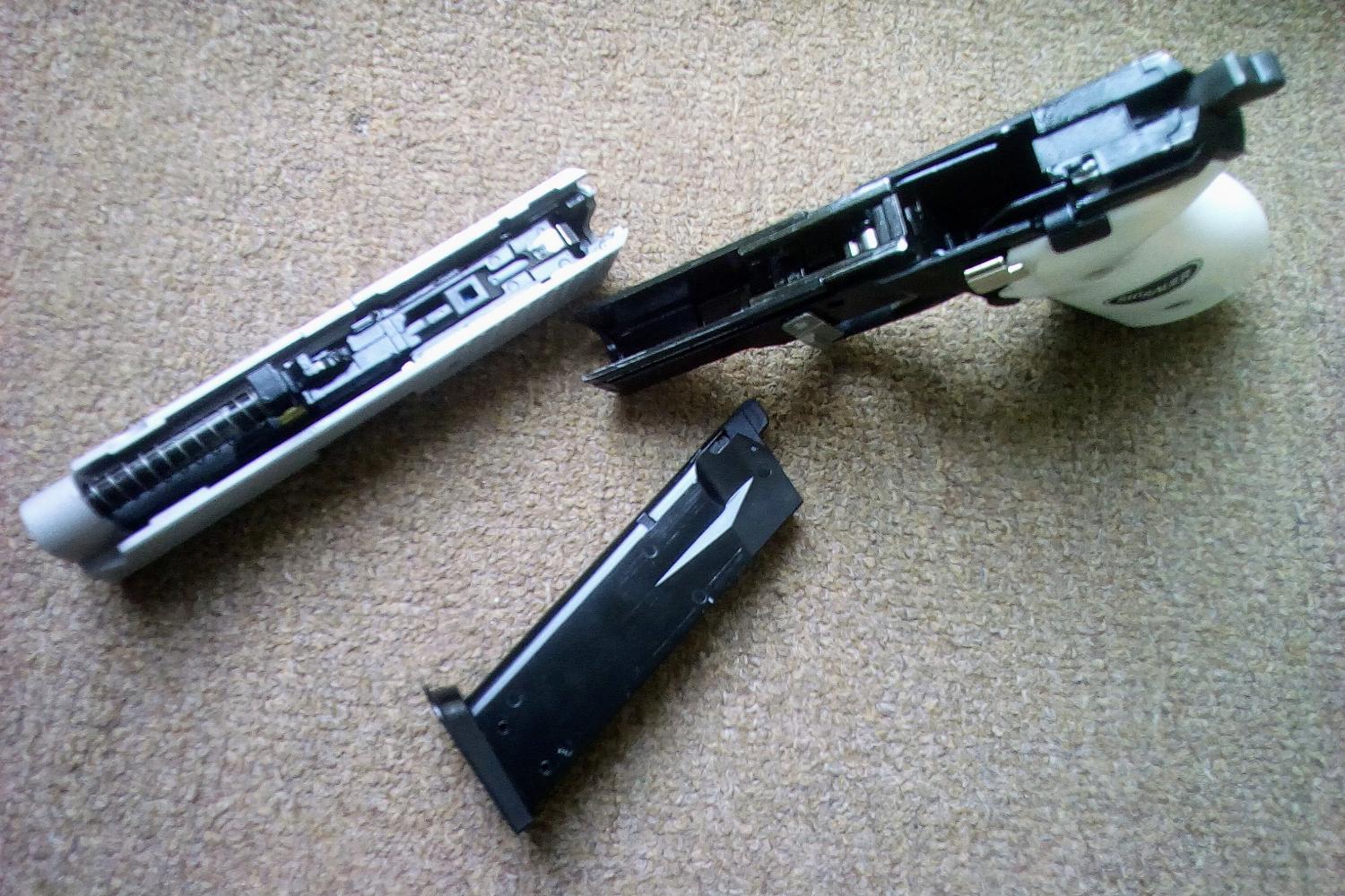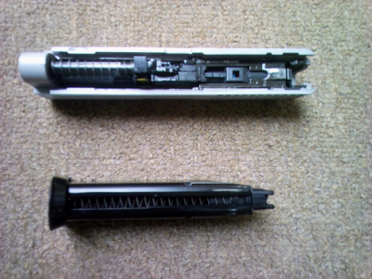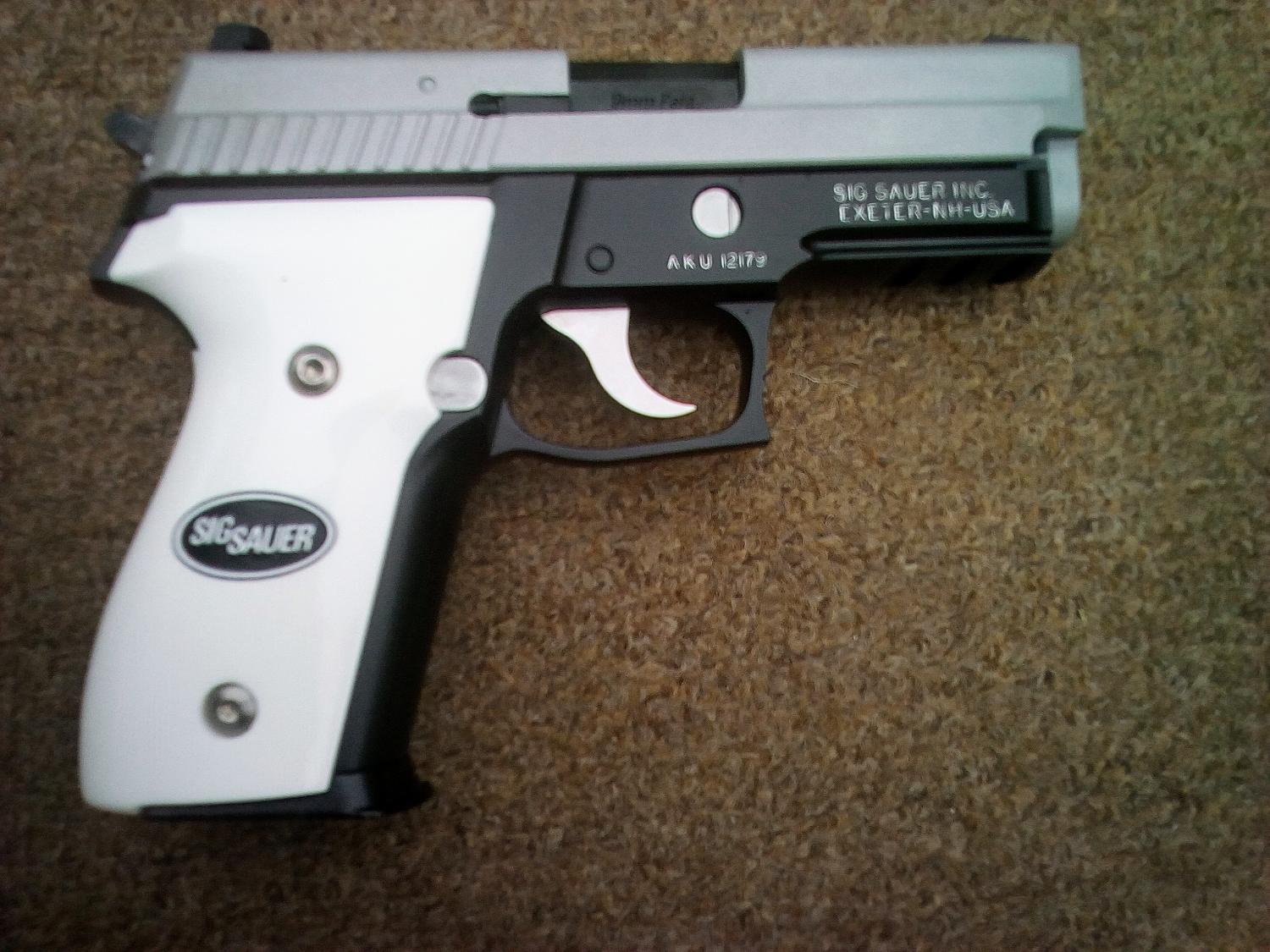 Sig P229 from KJW. Fully working, very little use, collector item. Alloy slide and frame, real steel grips, steel outer barrel. Firing pin kit fitted.(Over size grip screw fitted to upper right hand grip) (£5.00 postage).