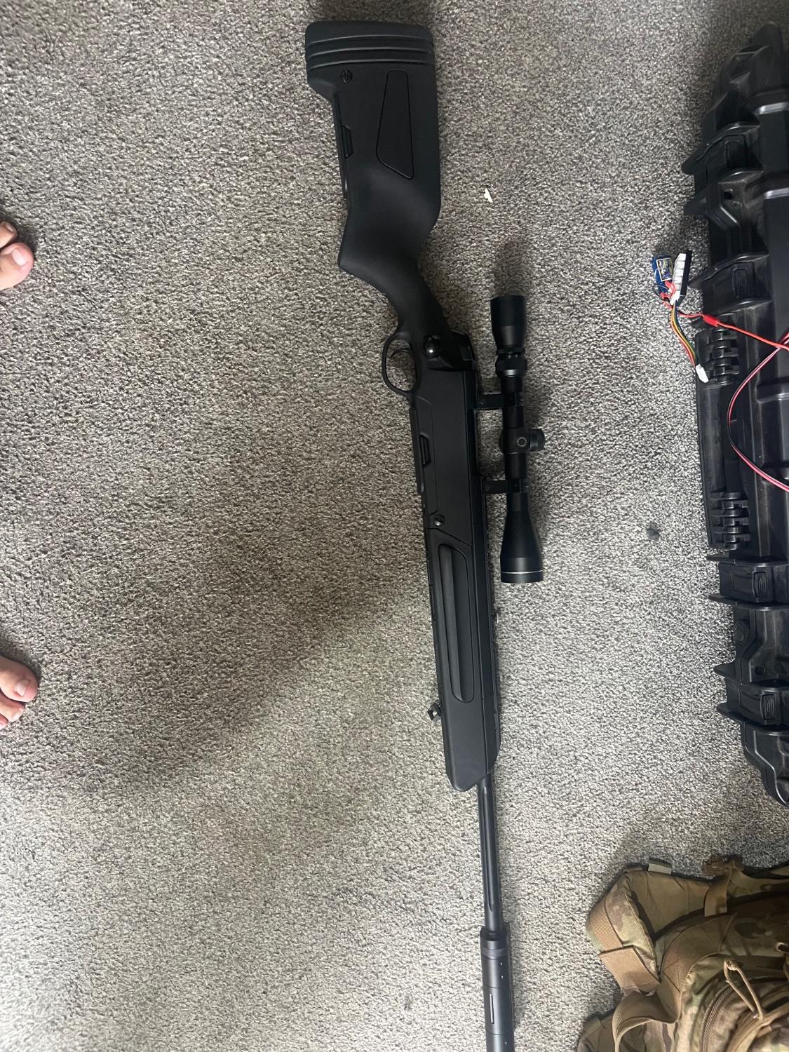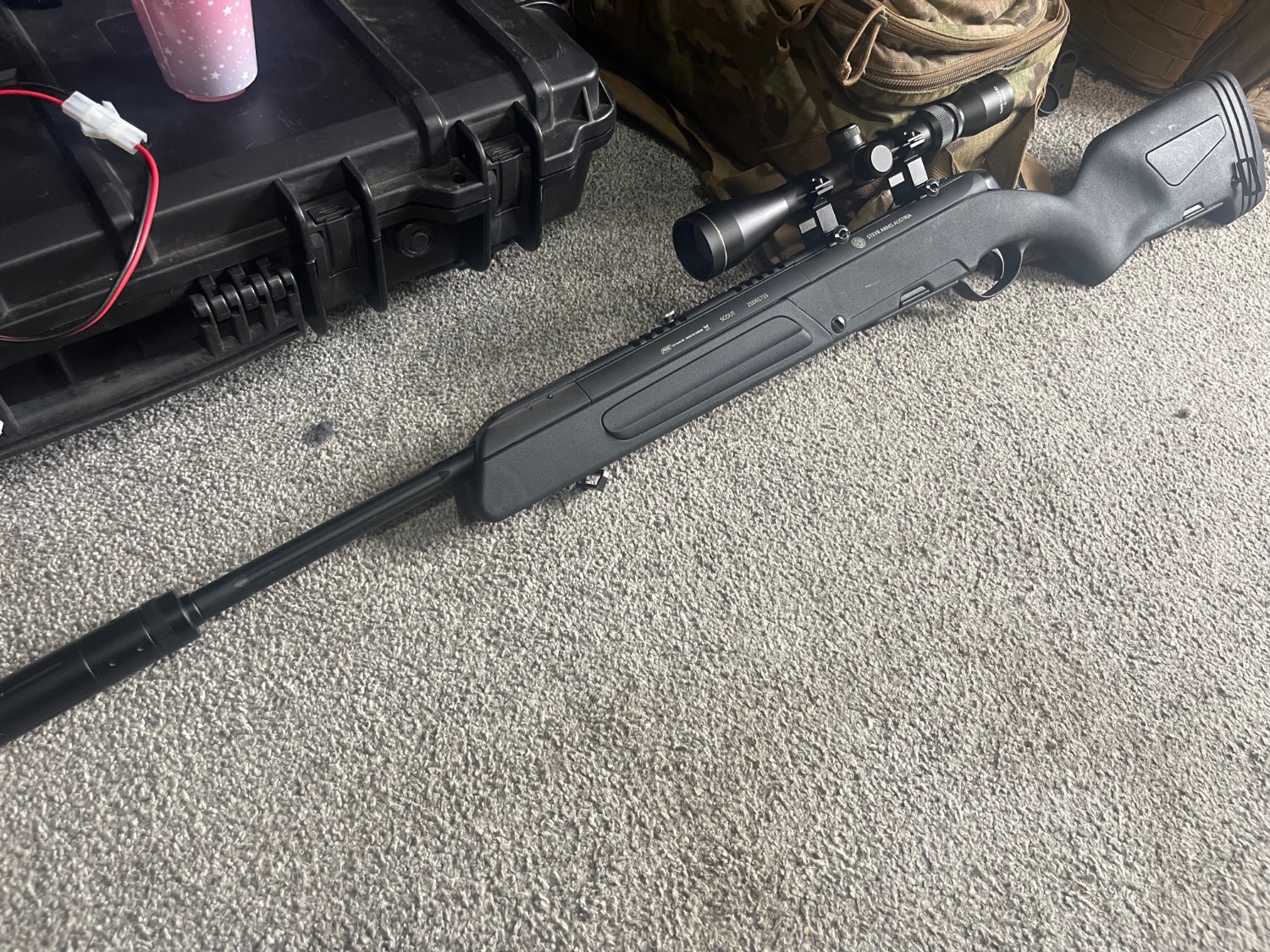 Selling as bought and don’t use it upgraded barrel and hop has 3 mags scope and silencer