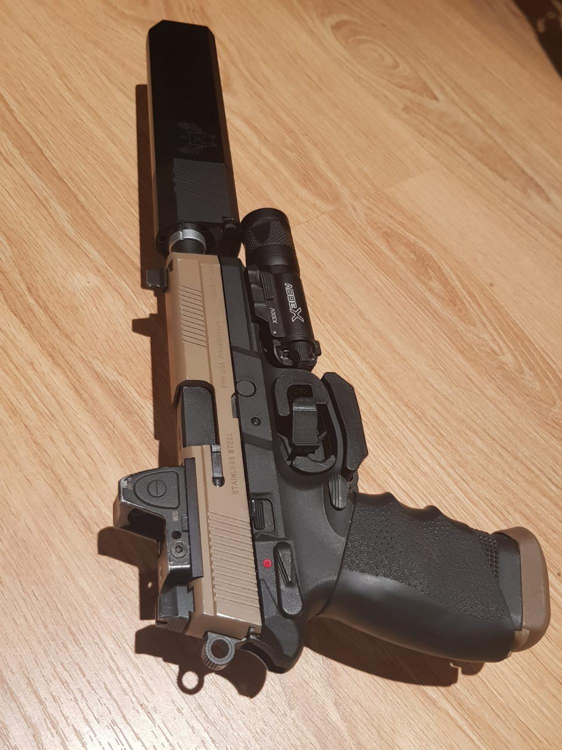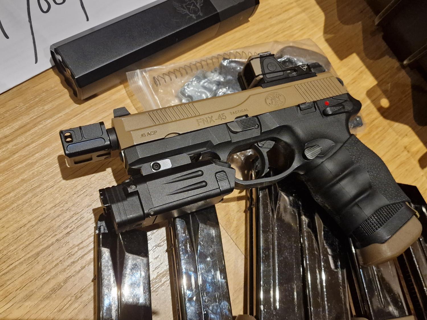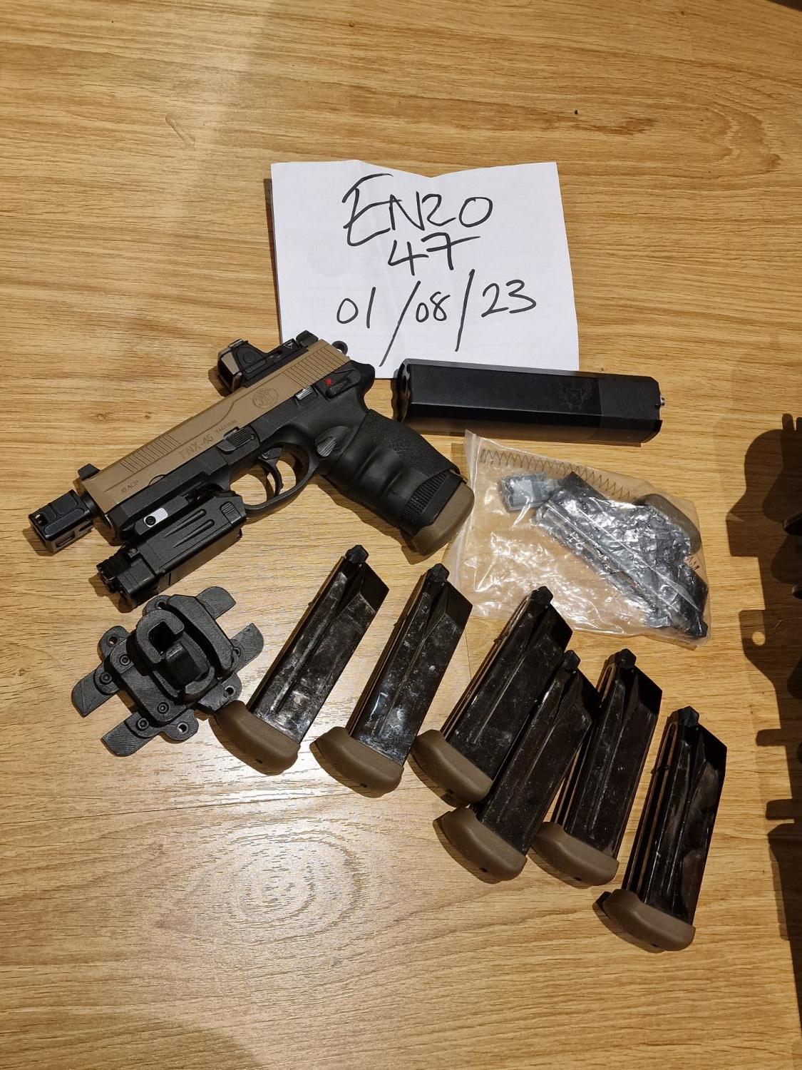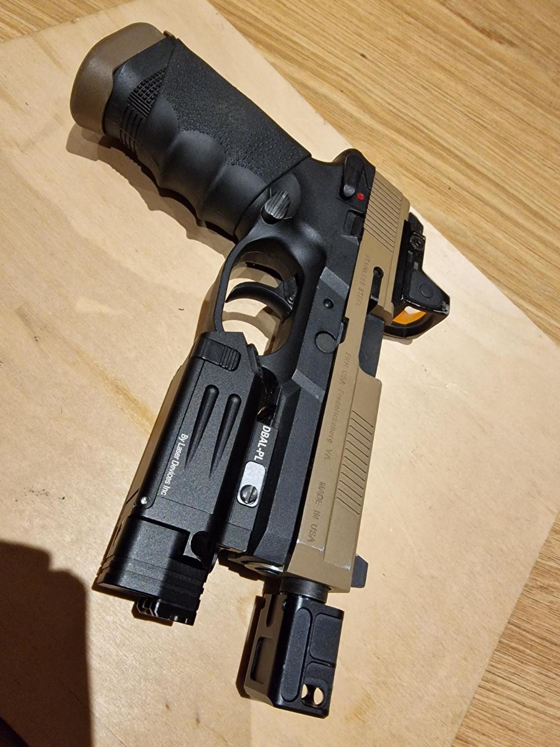 comes with 8 mags. one is dismantled needing new new seals. B-FAB custom trigger retention holster. Rmr Red dot. Hogue Grips . osprey suppressor with inner barrel. 5ku sparc L compensator .DBAL-PL Ir lazer light combo .