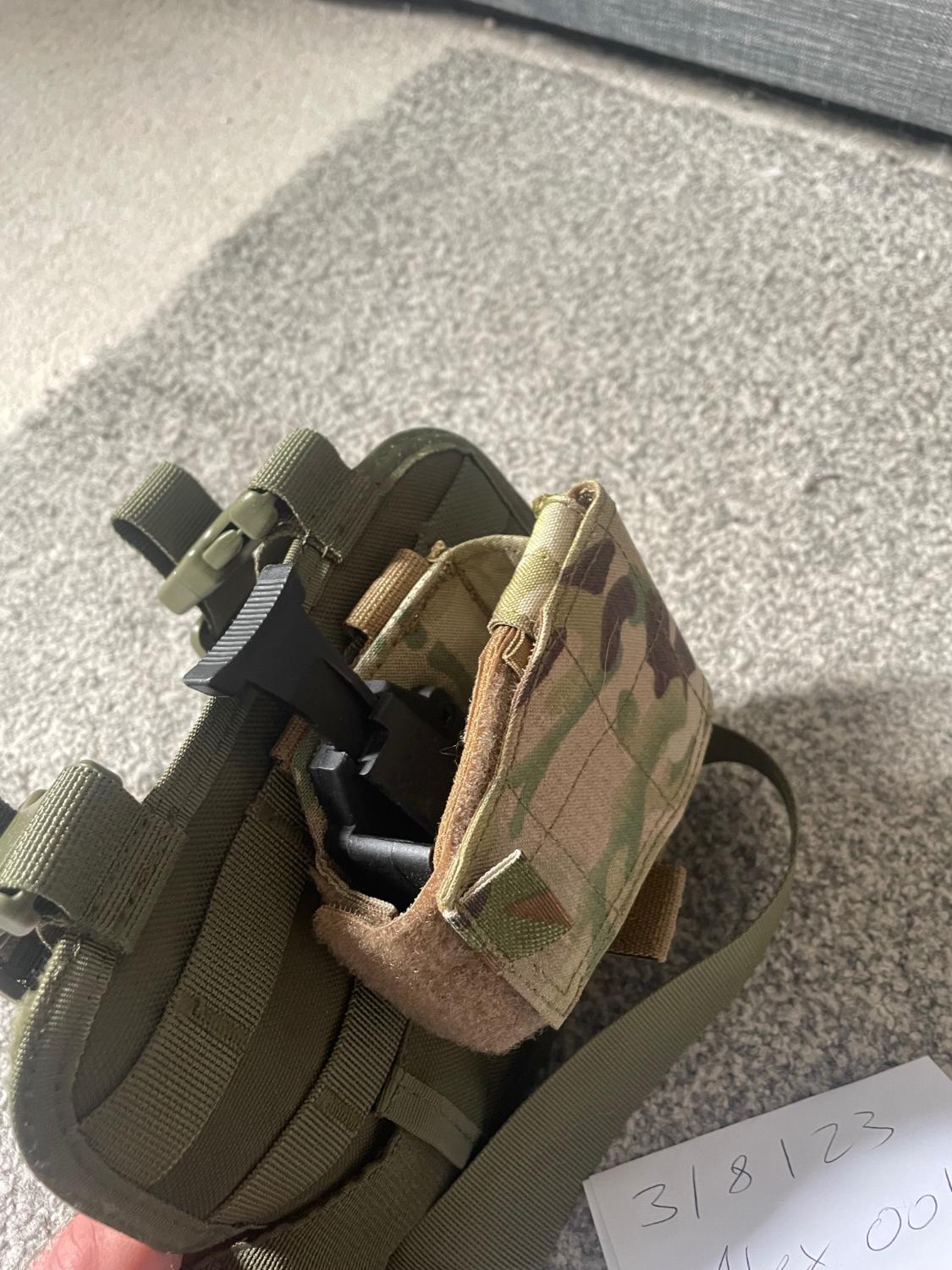 Warrior Assault universal pistol holster with a drop leg plate attachment.