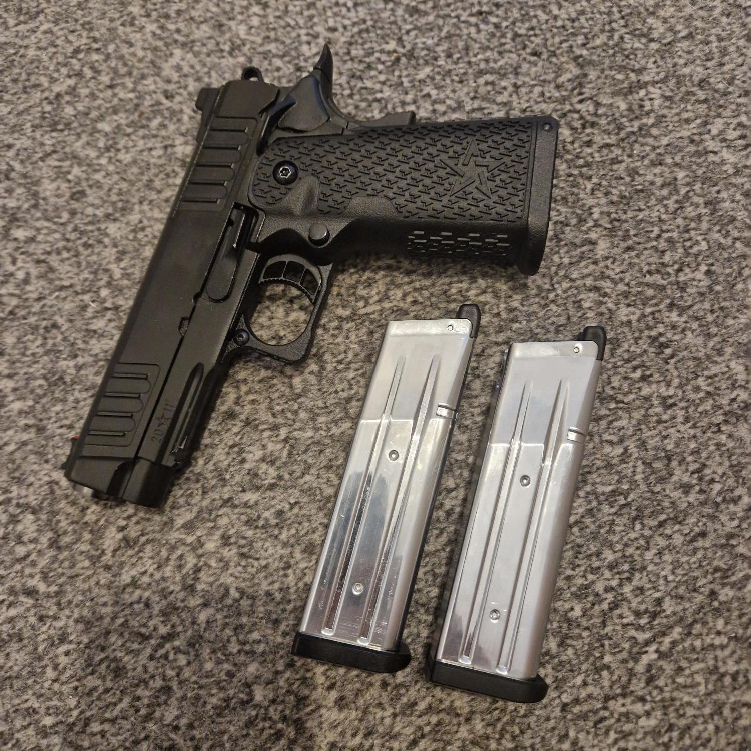 Selling as no longer gets used. Pretty accurate pistol. Comes with maple leaf 50° hop and hop wheel. Upgraded the nozzle spring to a waldo customs nozzle spring. Comes with 2 tm 4.3 mags.