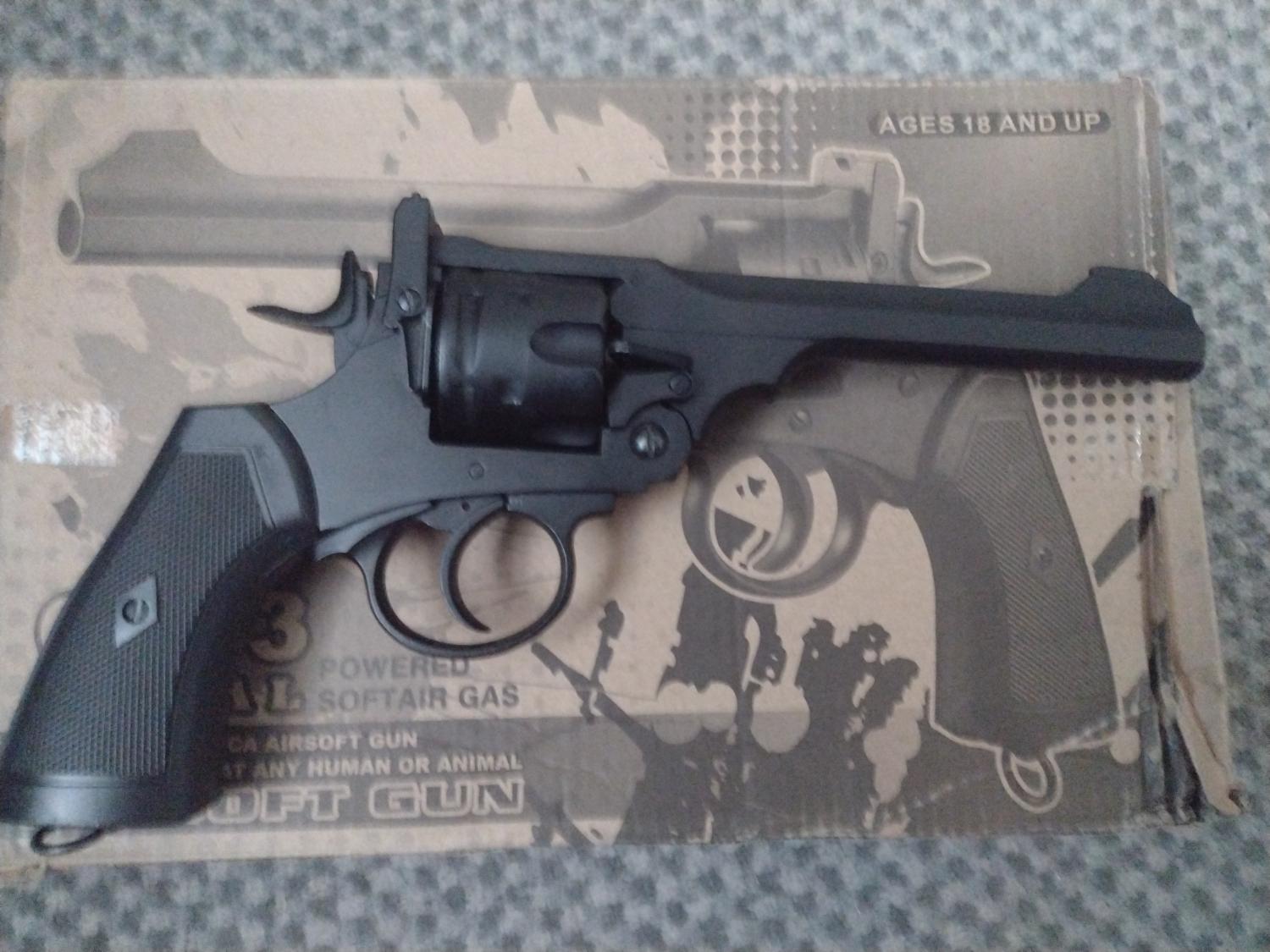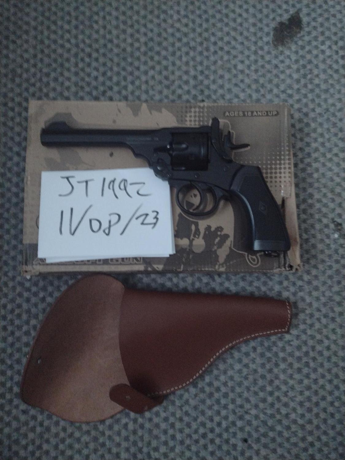for sale Well G293A MKVI Webley 6mm CO2 Revolver with 6 sheel leather holster and the orginal box and manual all in working order any question pm me looking for £50 with postage and paypal fees