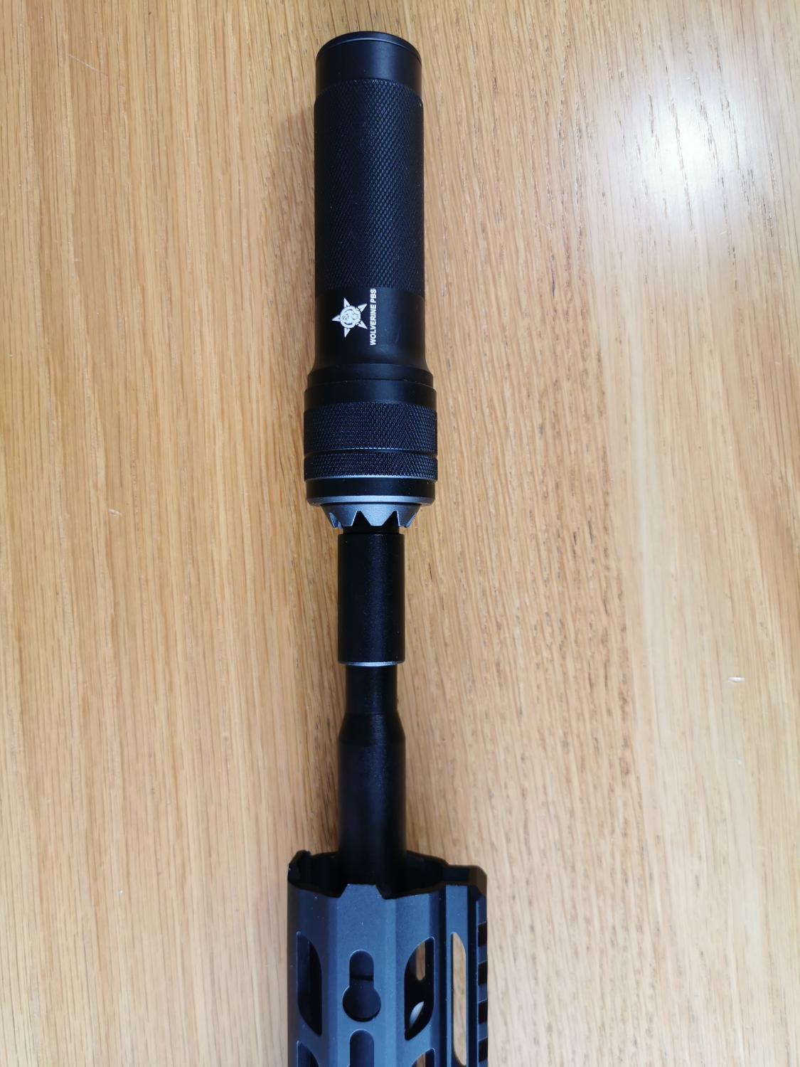 Please ensure you have enough clearance (around c.20mm plus the threaded postion of the outer barrel) between the end outer barrel and the front of the handguard (otherwise the bottom of the silencer will clash with the handguard when you try to screw it on), this shouldn't be a problem for AK type of AEGs.