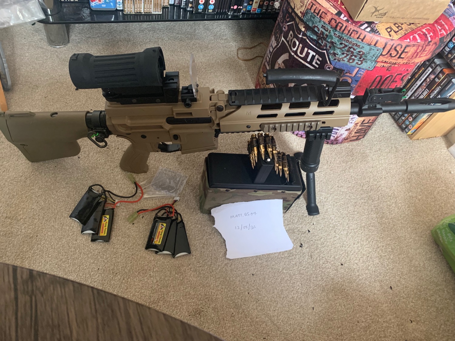 Internally stock, works perfectly on 11.1 lipo, fires both full auto and semi automatic so can be used in buildings.
