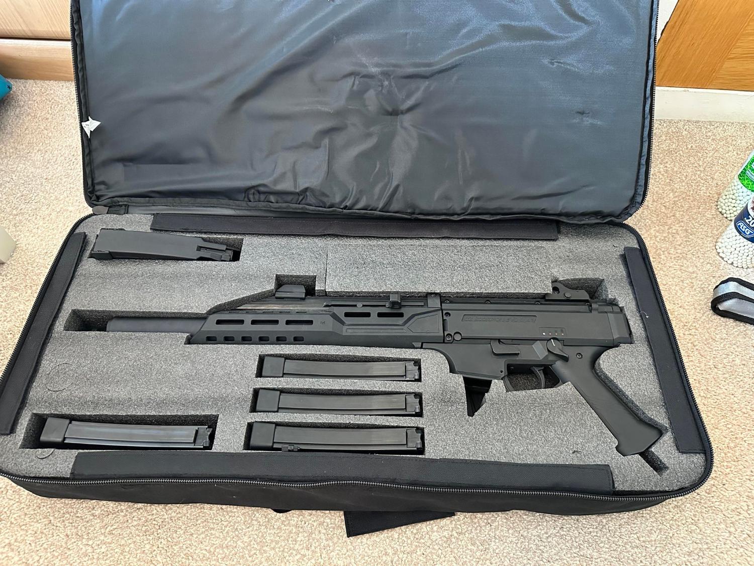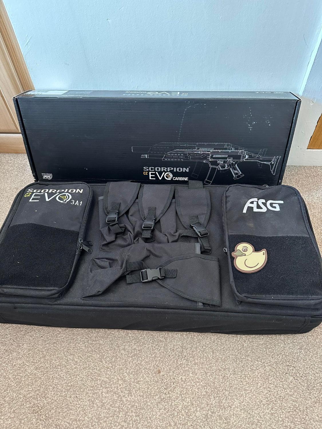 For sale is my ASG Scorpion Evo Carbine with a genuine soft carry case with padding cut to hold the gun perfectly along with accessories.