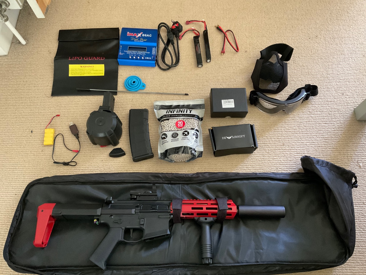 Double Eagle Honey Badger w/ Fire Control System Edition, M904G - very good rifle, used twice and is a very powerful nice rifle, fires at around 340 fps, I have put a foregrip and a red dot sight on it