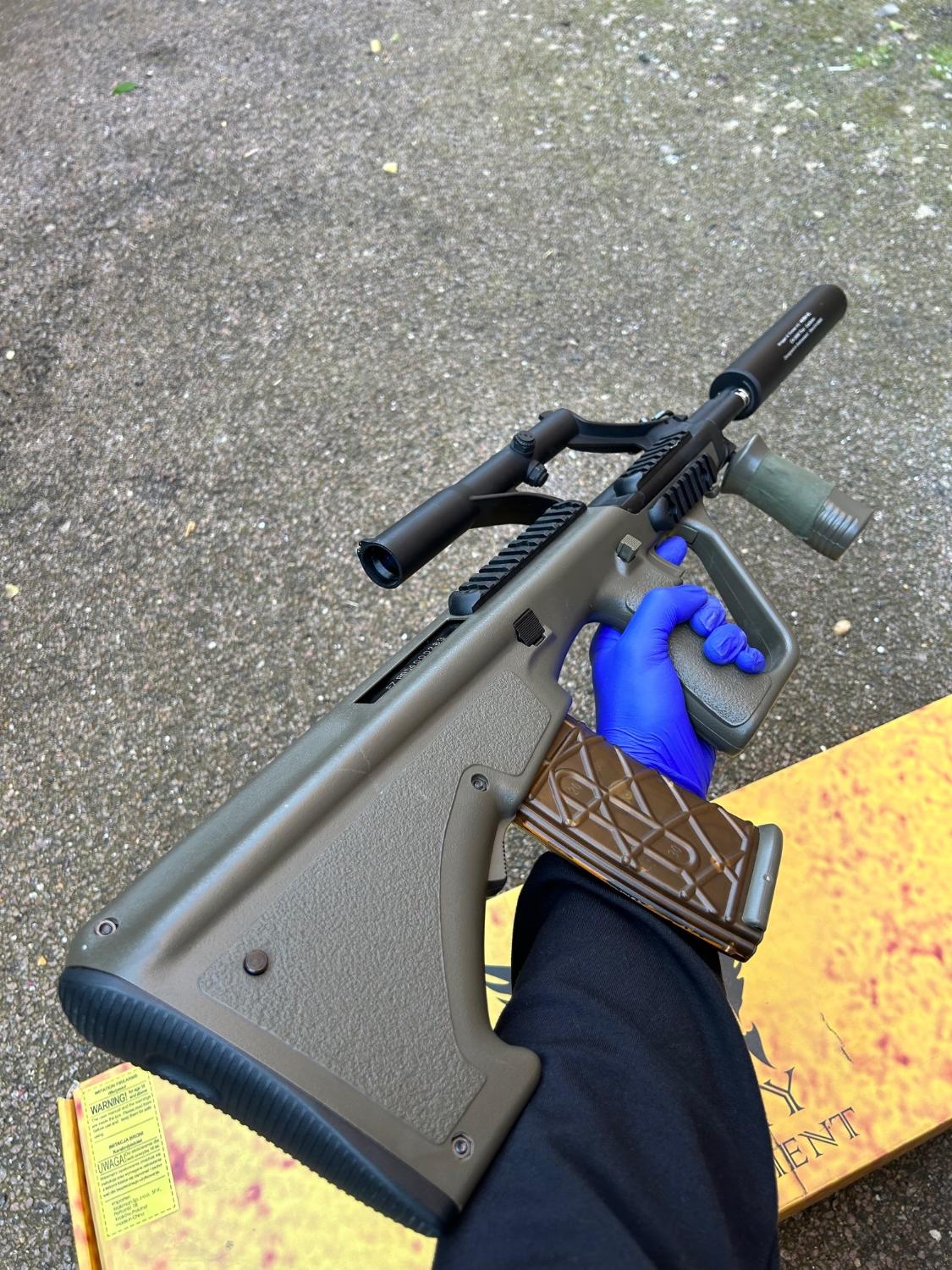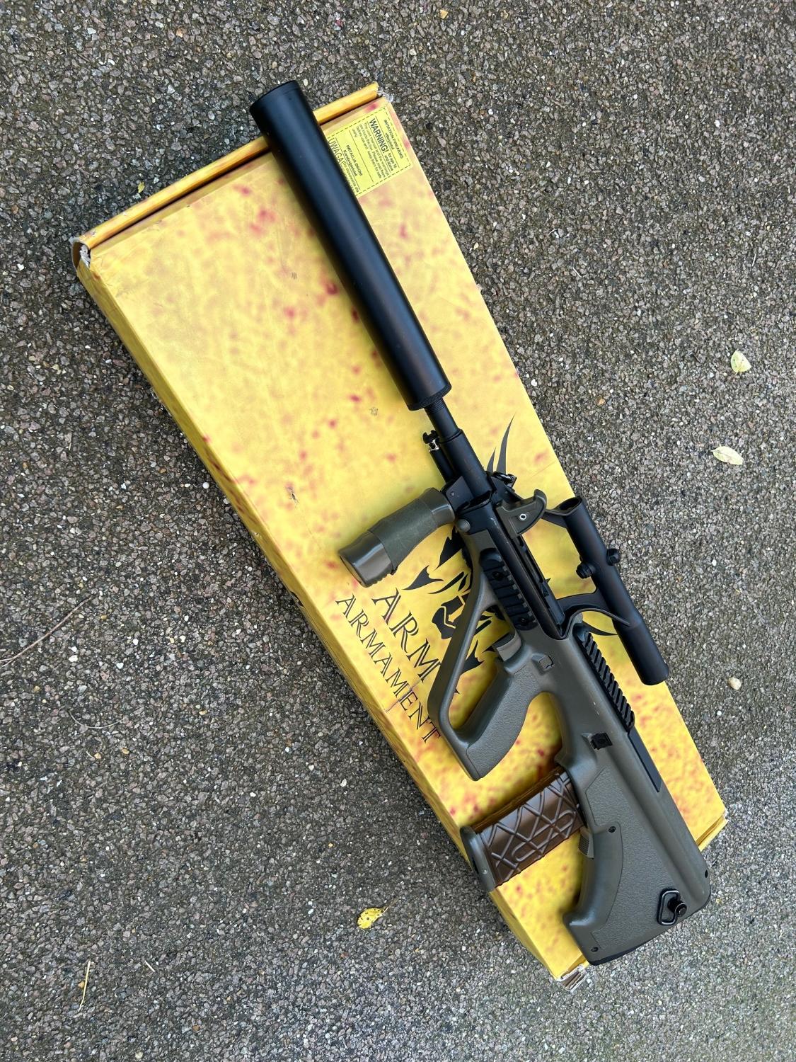 For sale is this Army Armament AUG A1 para / commando version, I have owned this AEG for around six months and during that time has only been used in the garden, never skirmished.