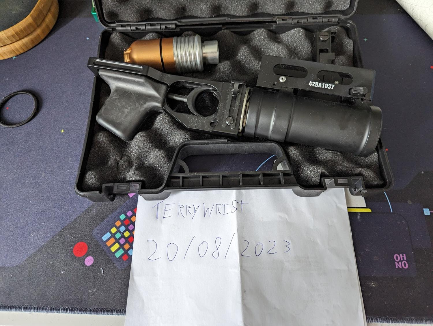 This is a Double Bell GP-25 that I brought as a wall hanger for my AKM but never skirmished. I've test fired it a few times and it works as a moscart shell does (A shower of bb's). There is slight damage on the case which i have shown in this ad