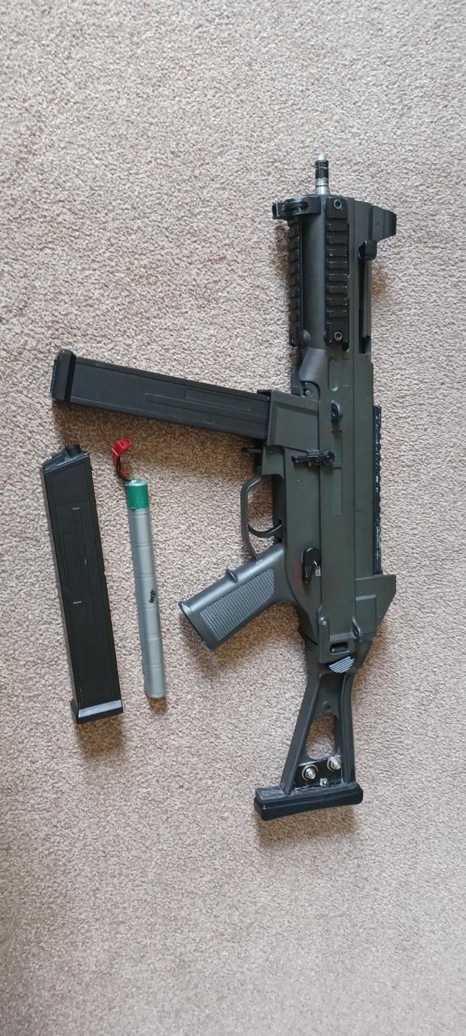 Would like a trade and see what you have to trade (can be something broken but please say it is broken in messages) or could sell for a reasonable price. It does have a shortned stock that folds but does not stay. This is a double eagle m89 ump45 it comes with a extra mag and a battery 8.4 volts 1150 mAh. It is In mint condition shimed and has a high torque motor inside. Feel free to send some photos and messages of what you have to trade. Also the location is close to me but it won't be where I am don't know why its not working.
