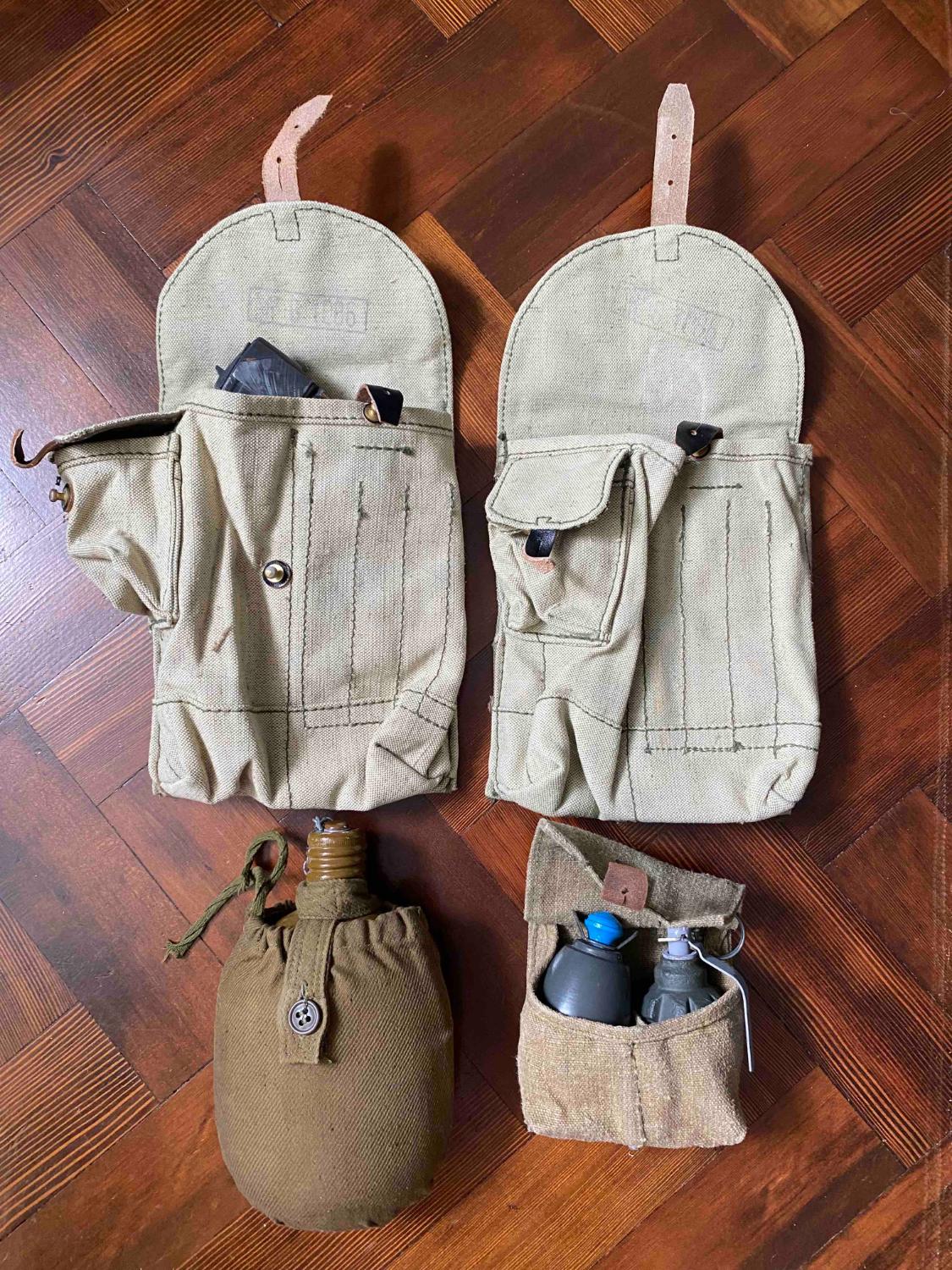 1) Two Afghan period Soviet Army pouches for AK mags: