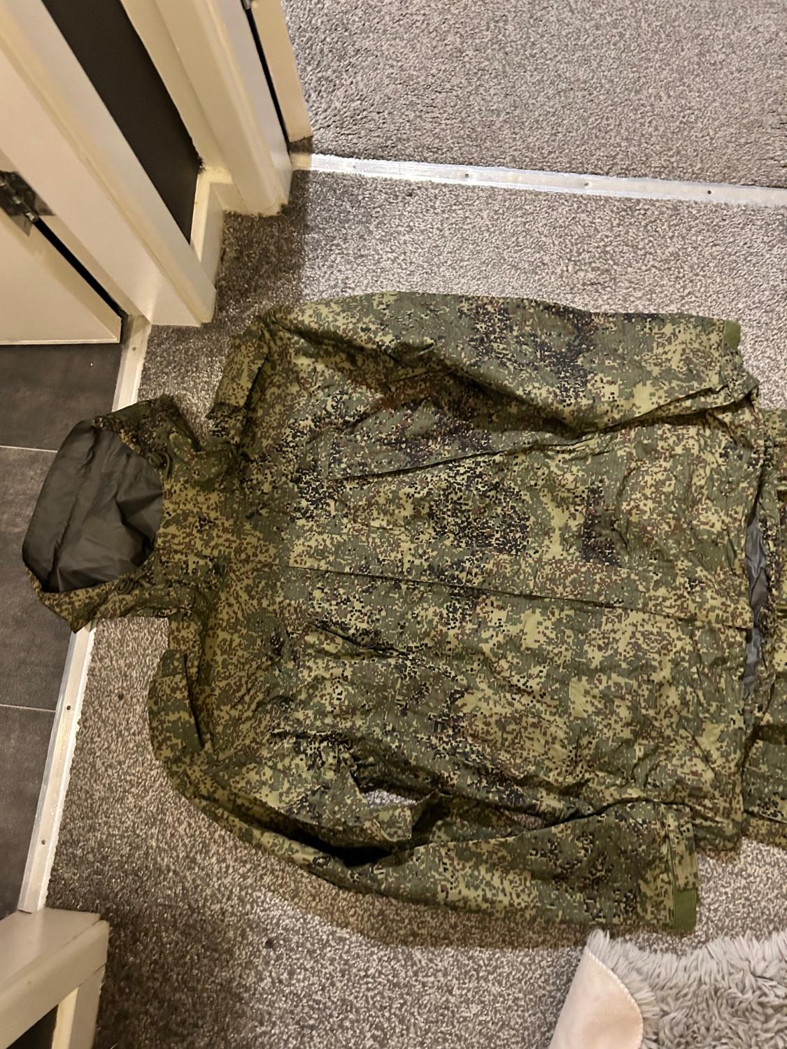 Genuine Russian army issue Rain suit made by BTK group the official suppliers of uniforms to the Russian armed forces, size is 52-4. Hardly used slight removal of waterproof layering on the inside but it’s tiny about as big as a £2 coin.