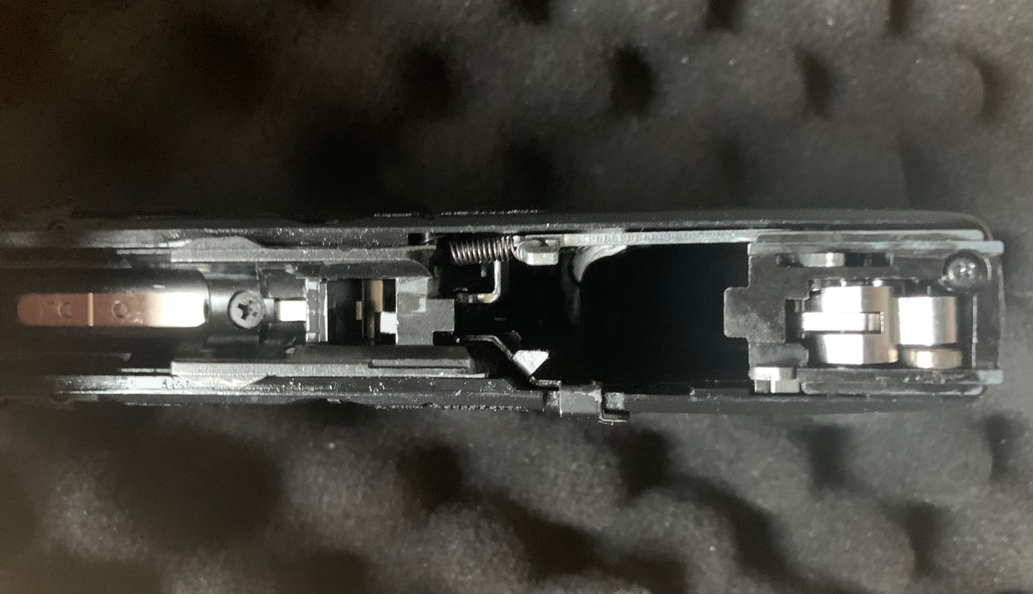 This particular Glock 19 is made by TM and upgrade with Gus modify licensed Agency slide kit (£200) and cowcow technology trigger, hammer set kit.