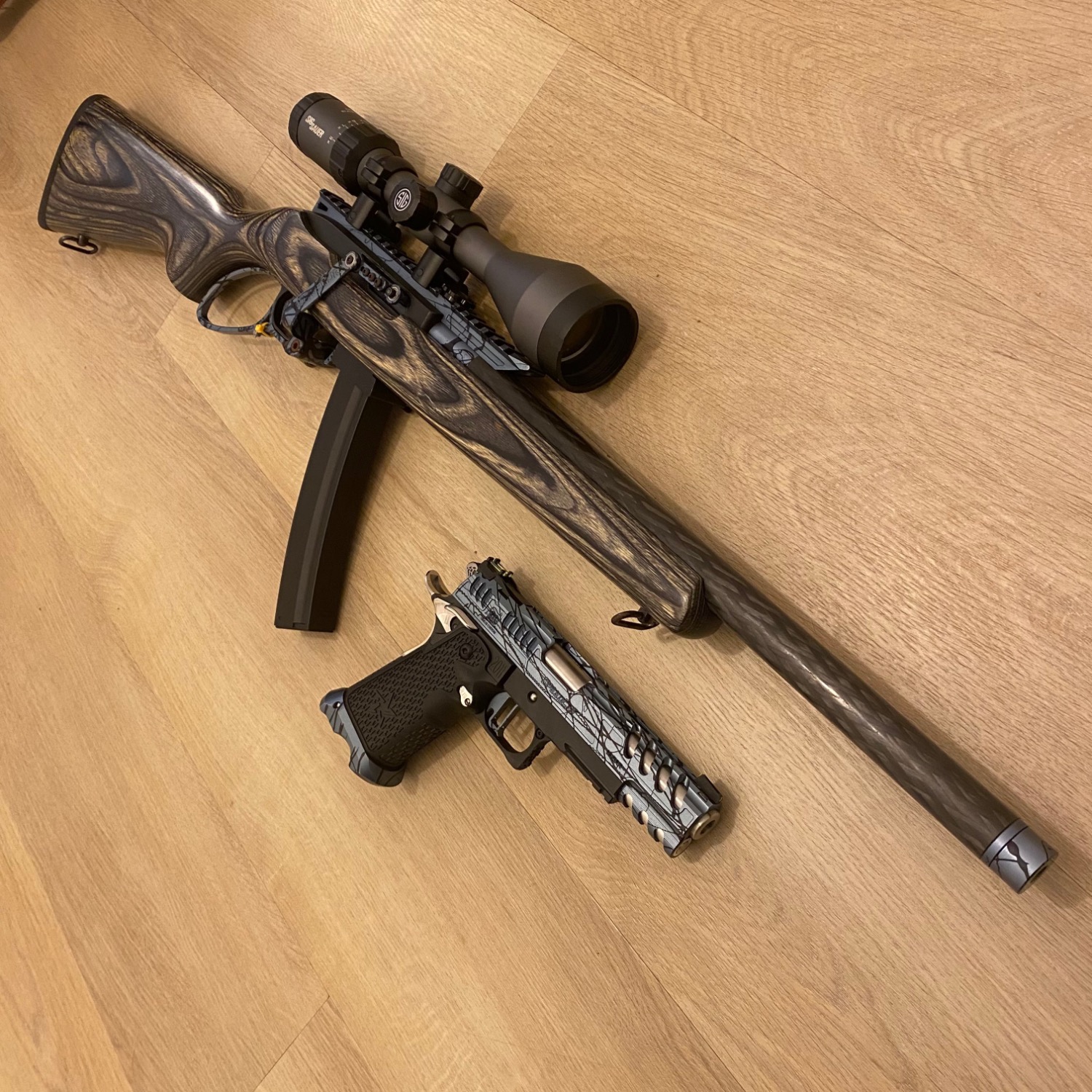 Please excuse the photo, as I won’t be back at home for a few days - it’s really a place holder until I can take some more up to date images. The first image shows the gun with all the Rogueworx MP Rail, the second and third show it with the older G rail that is included. The Tanuki adaptor is NOT included in the sale. Cat not included either