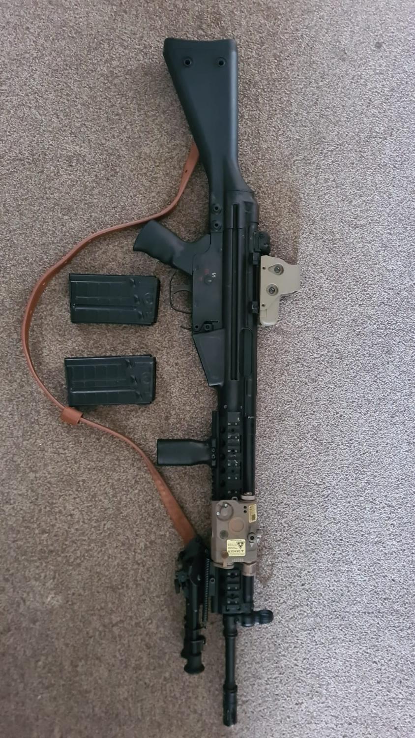 Holo, Rail, Grip, Bi pod, 2 Mags, PEQ box