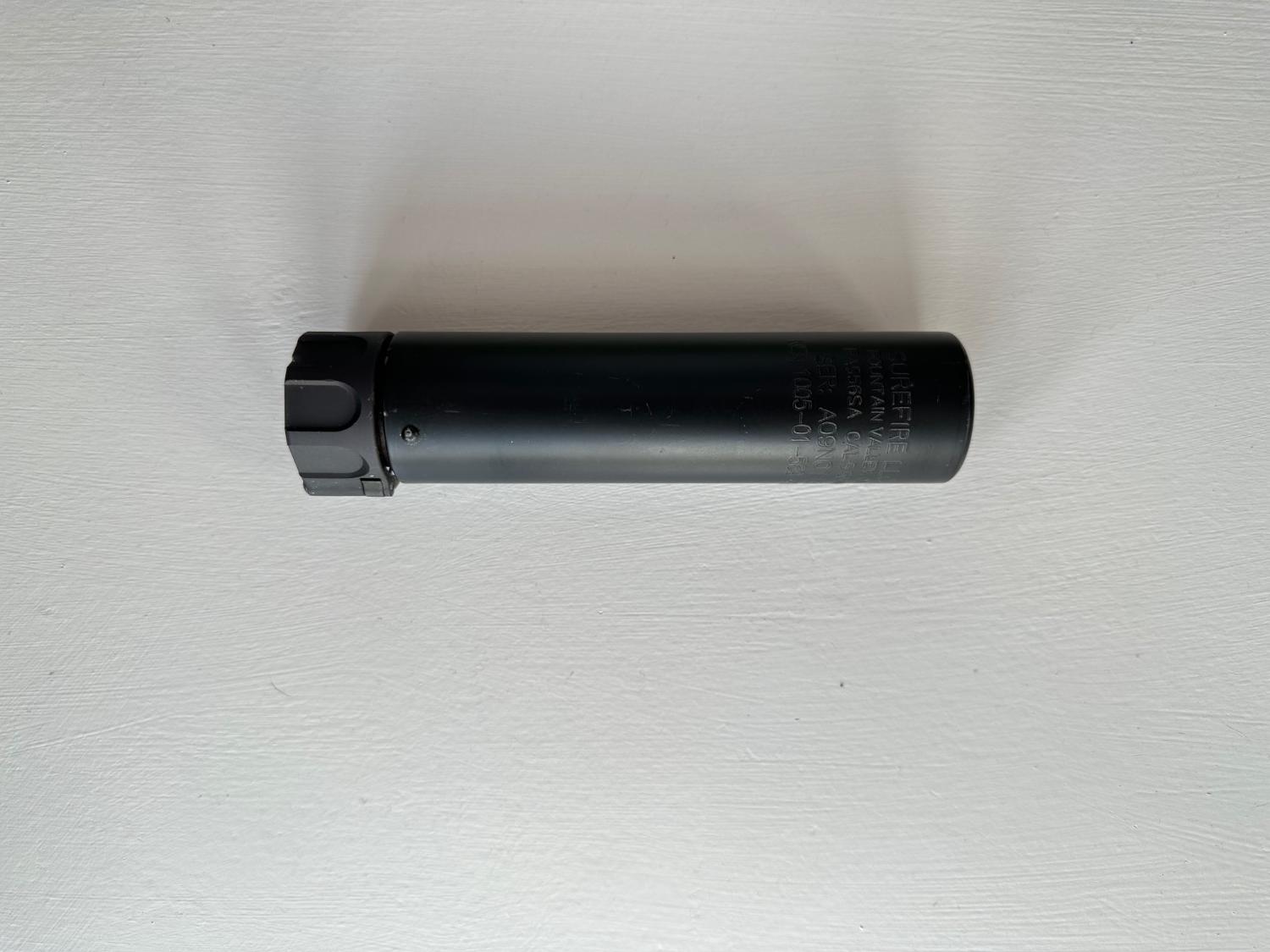 Never skirmished, but has been mounted to a RIF. There are a few scuffs and scratches (pictured), but it’s a suppressor…