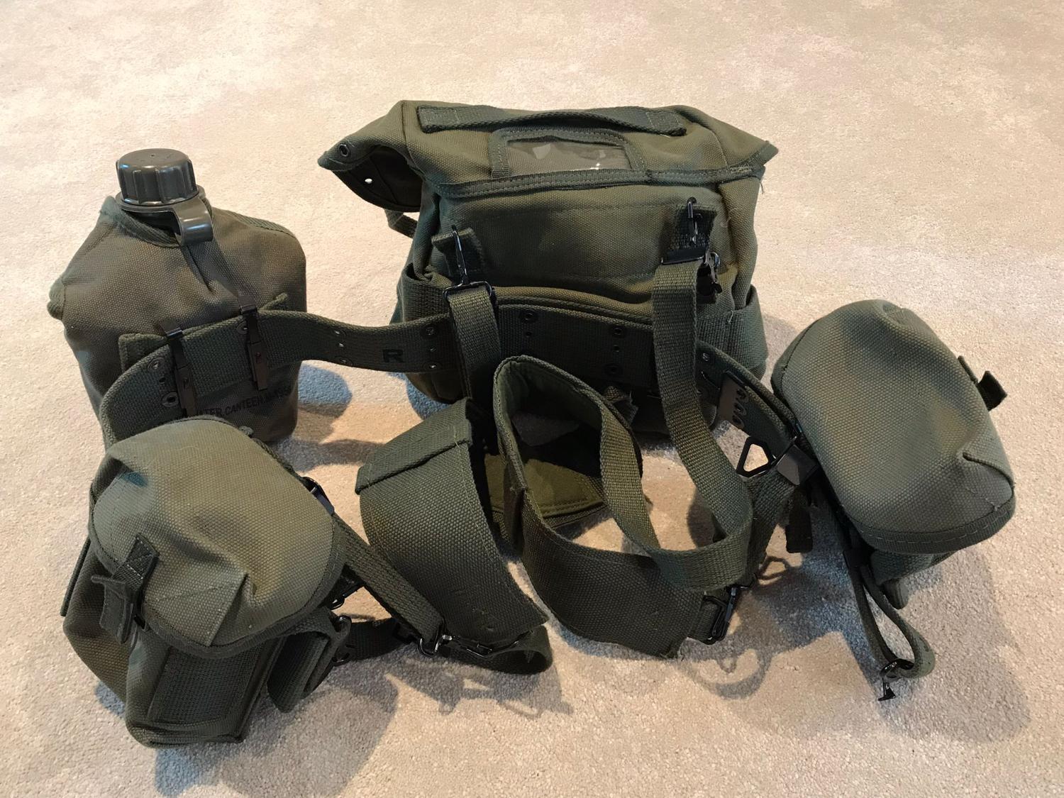 replica webbing inc. two mag pouches that can carry 3 stubby m16 mags, canteen, and butt pack. SOLD