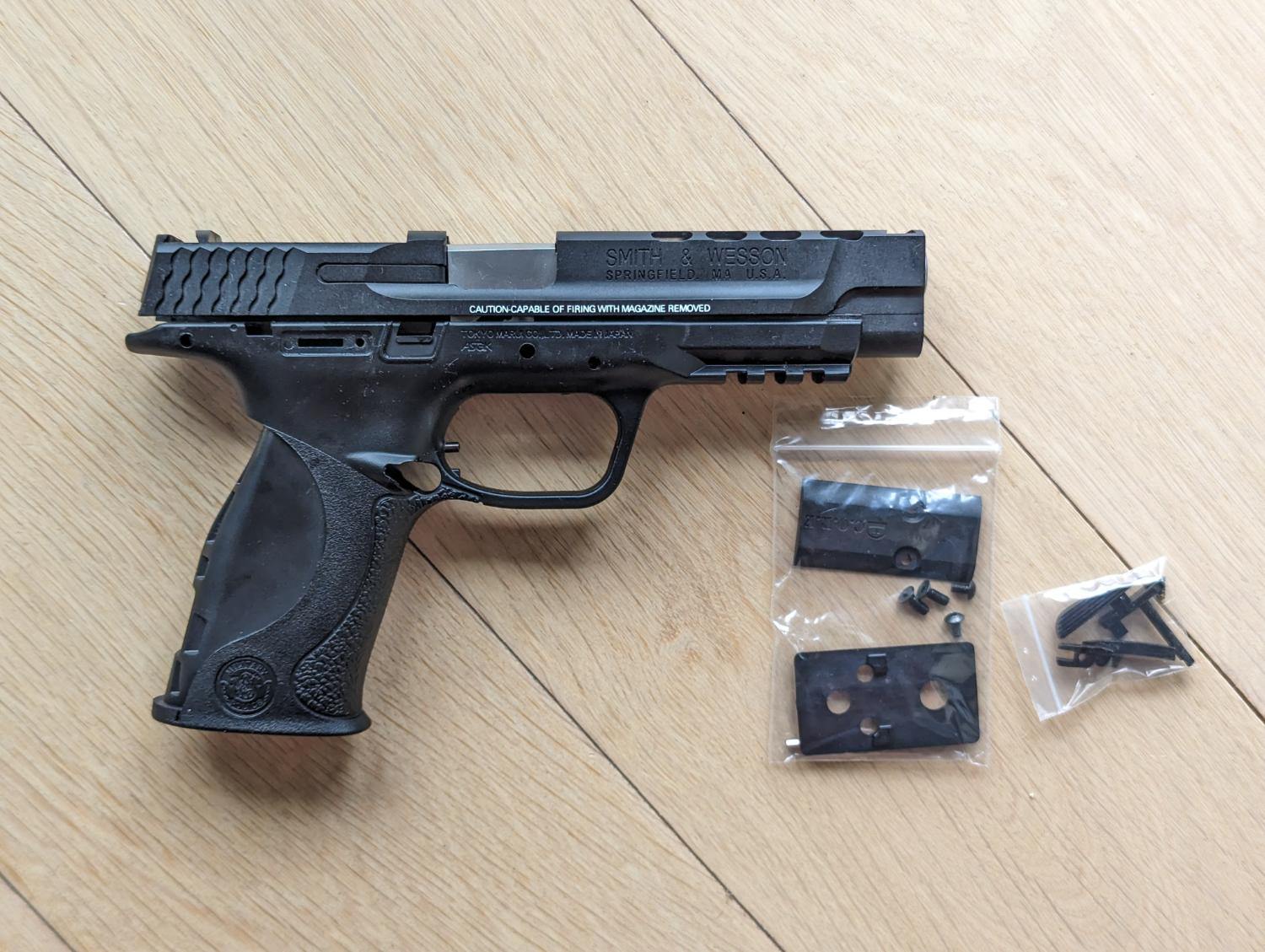 Includes optic mount, recoil spring, safety and loose parts as seen in the photos. This could be a useful kit to complete an M&P9L build out of the more available M&P9 with the right internals.