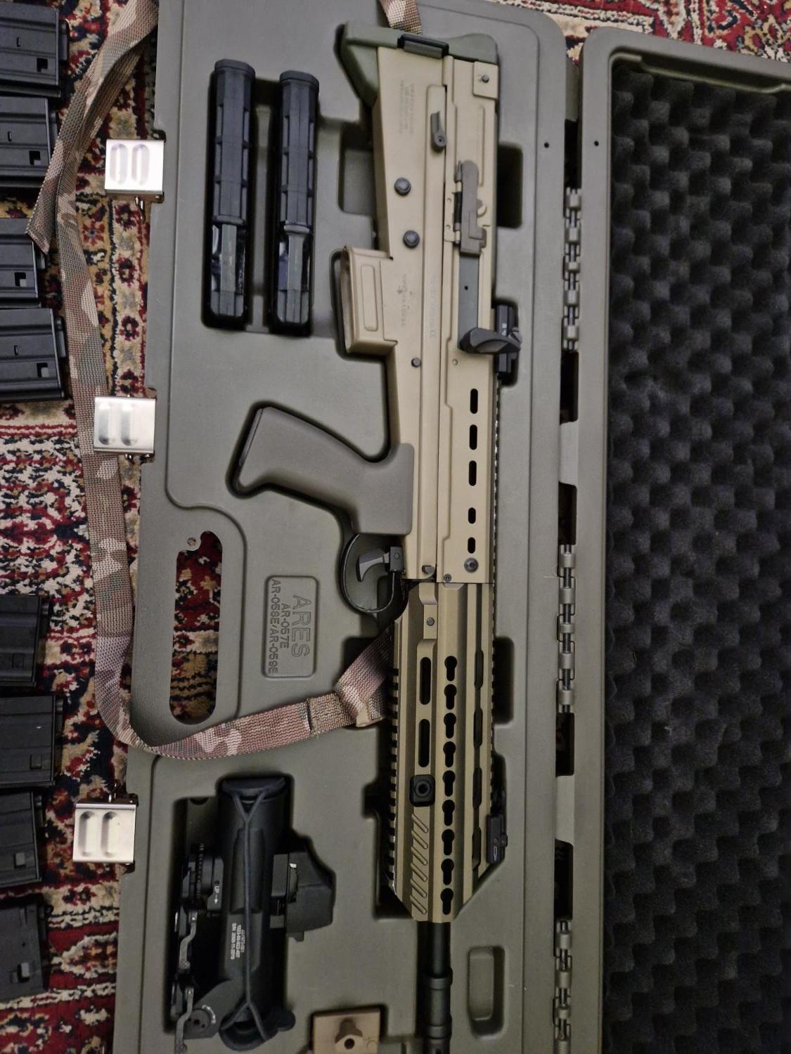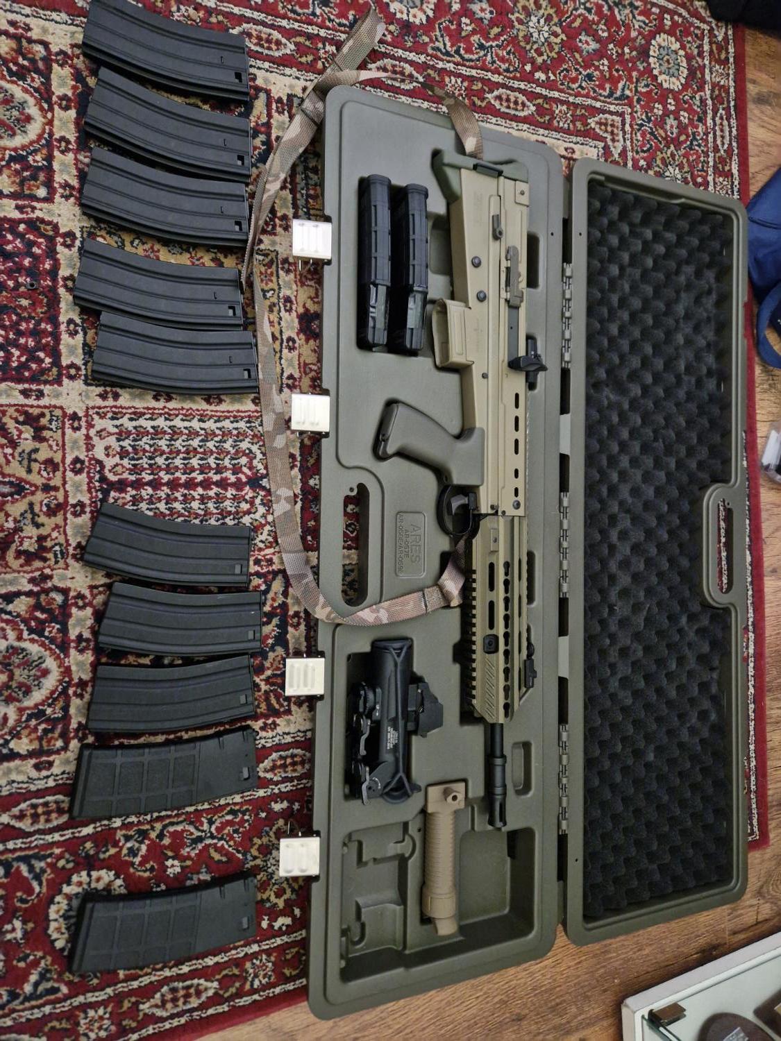 I am selling my Ares L85A3 with a complete set of accessories. The gun is in excellent condition with slight cosmetic wear (see photos). It has been used several times and the spring has been ungraded to ~330 FPS. There are some cosmetic scratches on the lower rail due to the use of a M320 grenade launcher (A lot of fun! See separate listing).