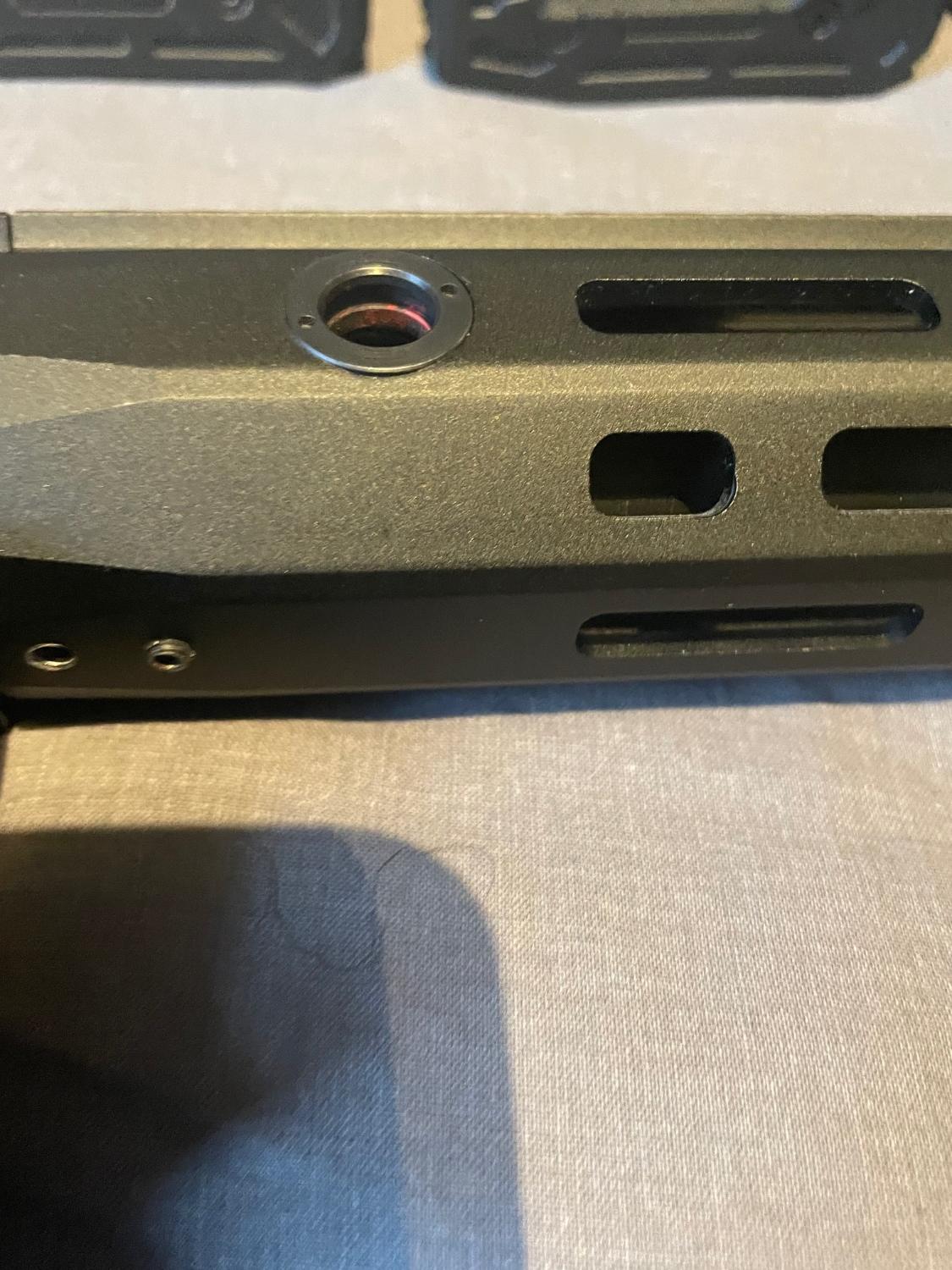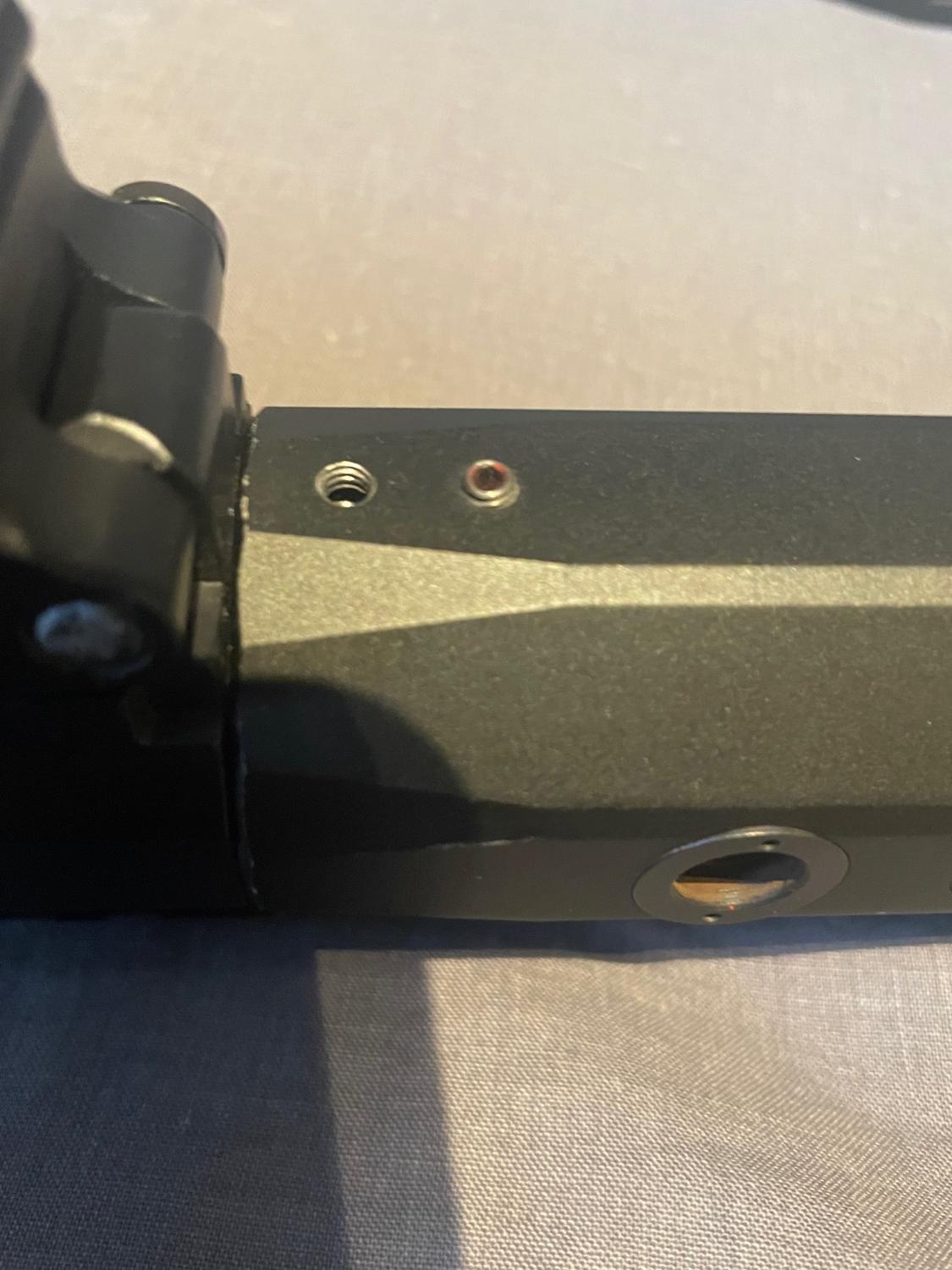 * Missing 1 x grub screw from rail, damage to thread as well, although the barrel is well attached to the receiver securely with no wobble or movement