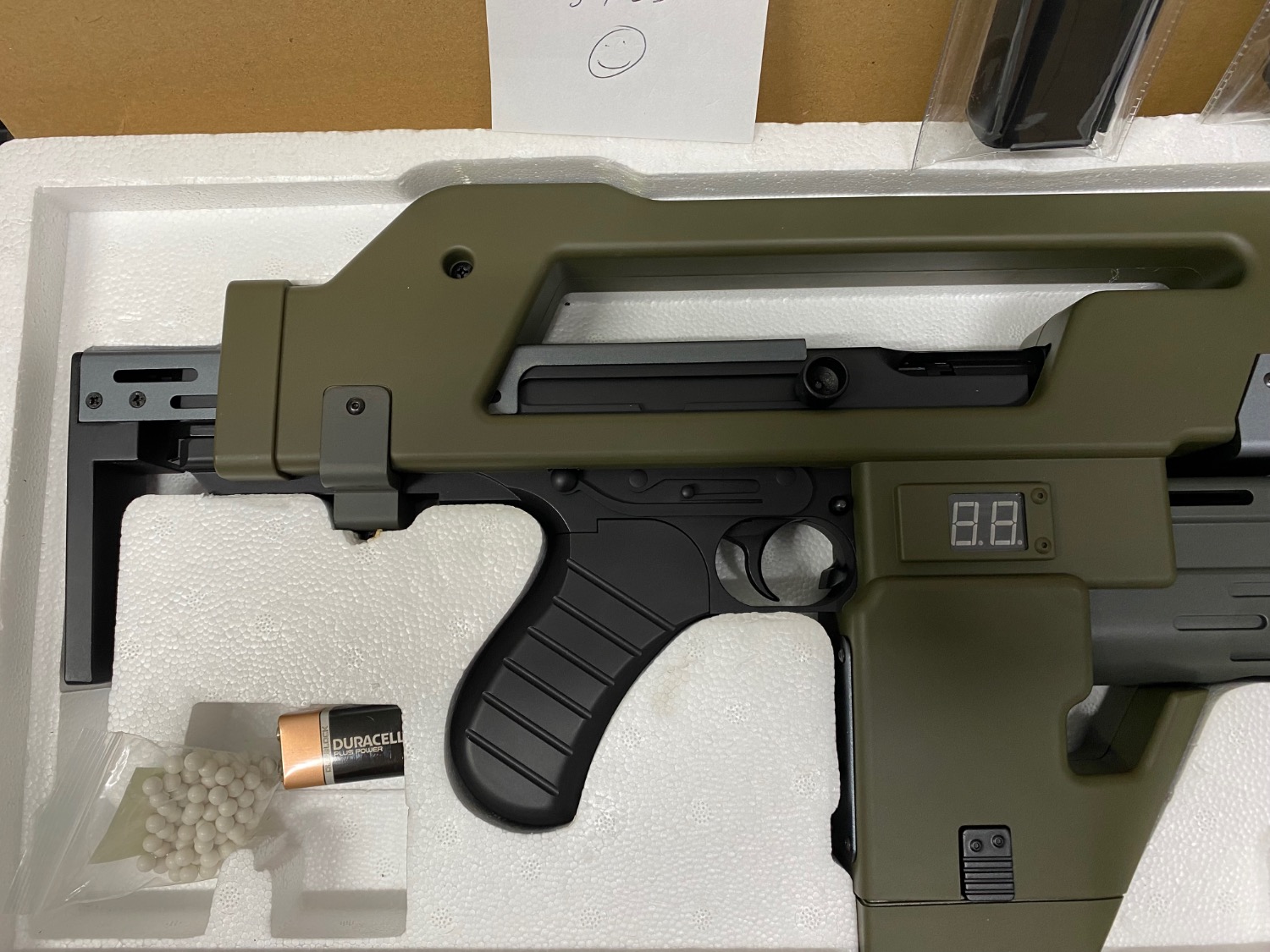 I bought this about 2yrs ago with the intention of doing all the mods you usually see or converting it it to GBB , however it’s just sat in its box since purchase , it is as near as dammit new as you’d receive from a retailer , it was hung on the wall for a very short time but other than that it’s been in its box . I’ve so many projects on the go and something has to give . Also included is two extra high cap mags which you could get some bases 3D printed for .