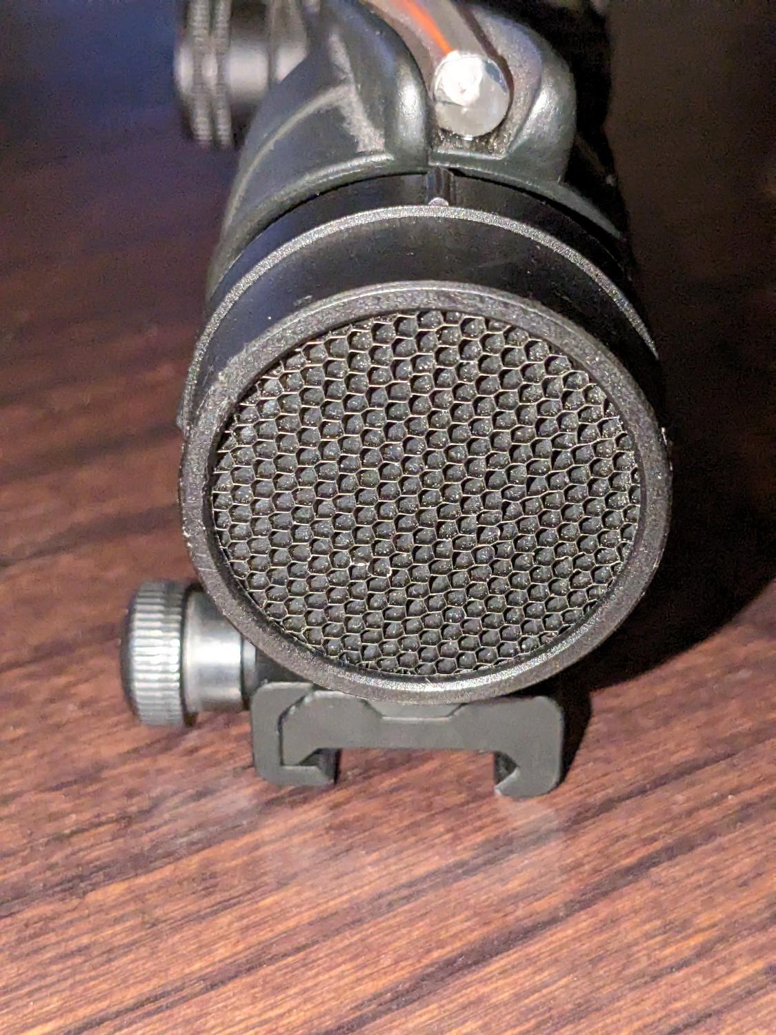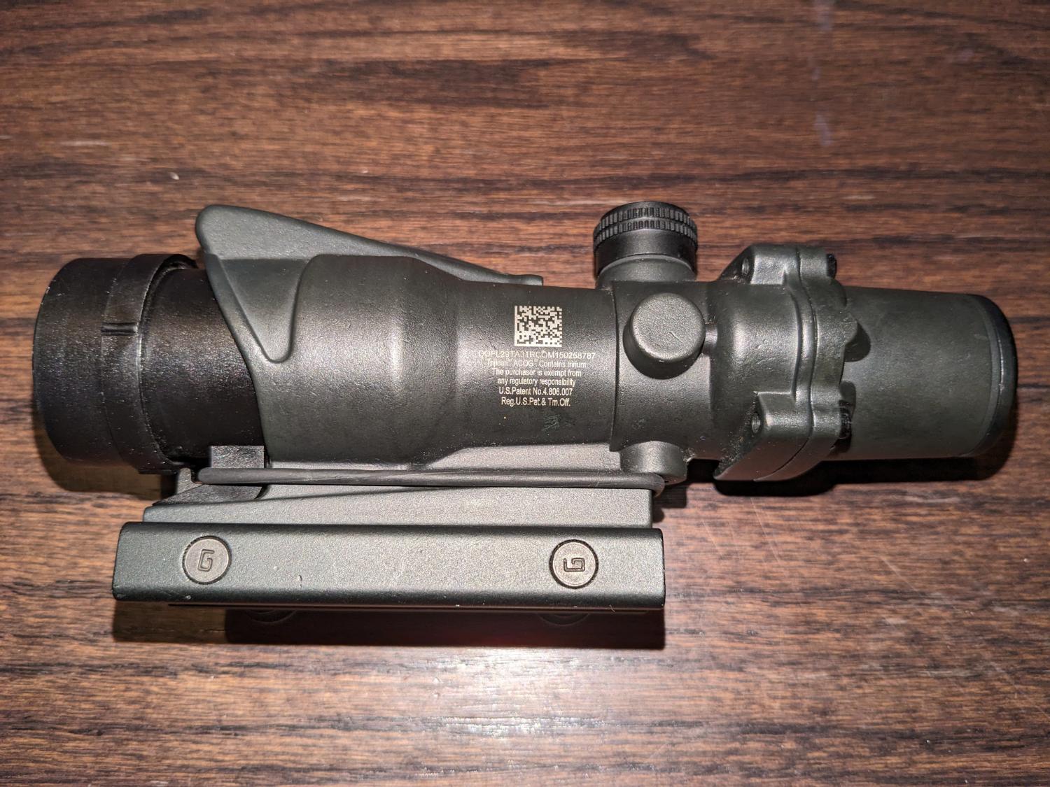 Here's my 4x ACOG replica which I've decided to shift due to it not really suiting any of my setups or loadouts. Comes with a killflash which is in good shape and has working fibre optic illumination for the reticle. Glass is super clear.