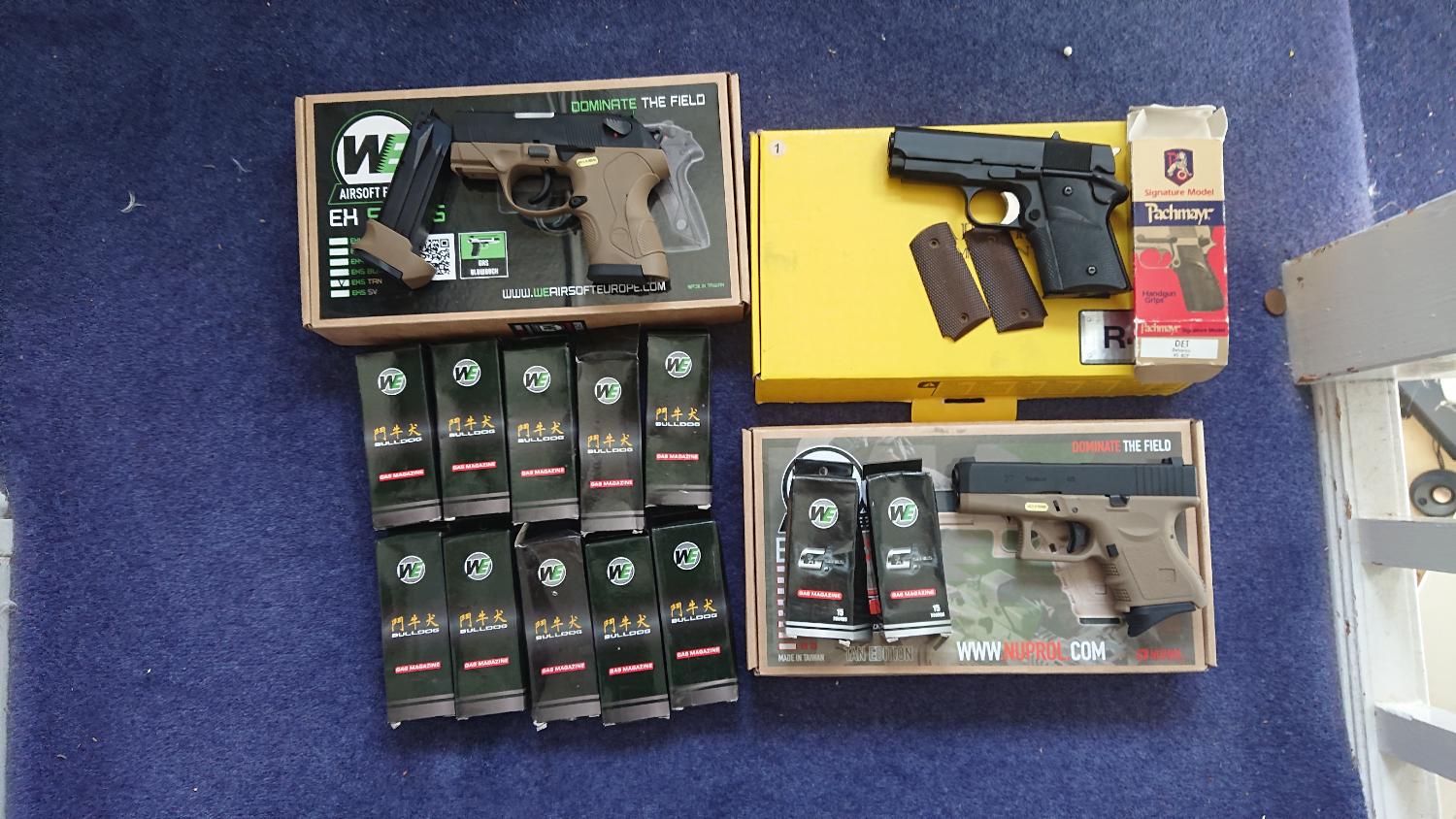 These 3 came as old stock from the shop. The detonics has been lightly used but is in good condition. The other two have been on display so may have some minor handling marks. Prices include paypal fees and postage. Please bear in mind these have been in a warehouse for a while so there may be some minor leaks. I will test the mags with the guns but any additional boxed mags wont be tested.