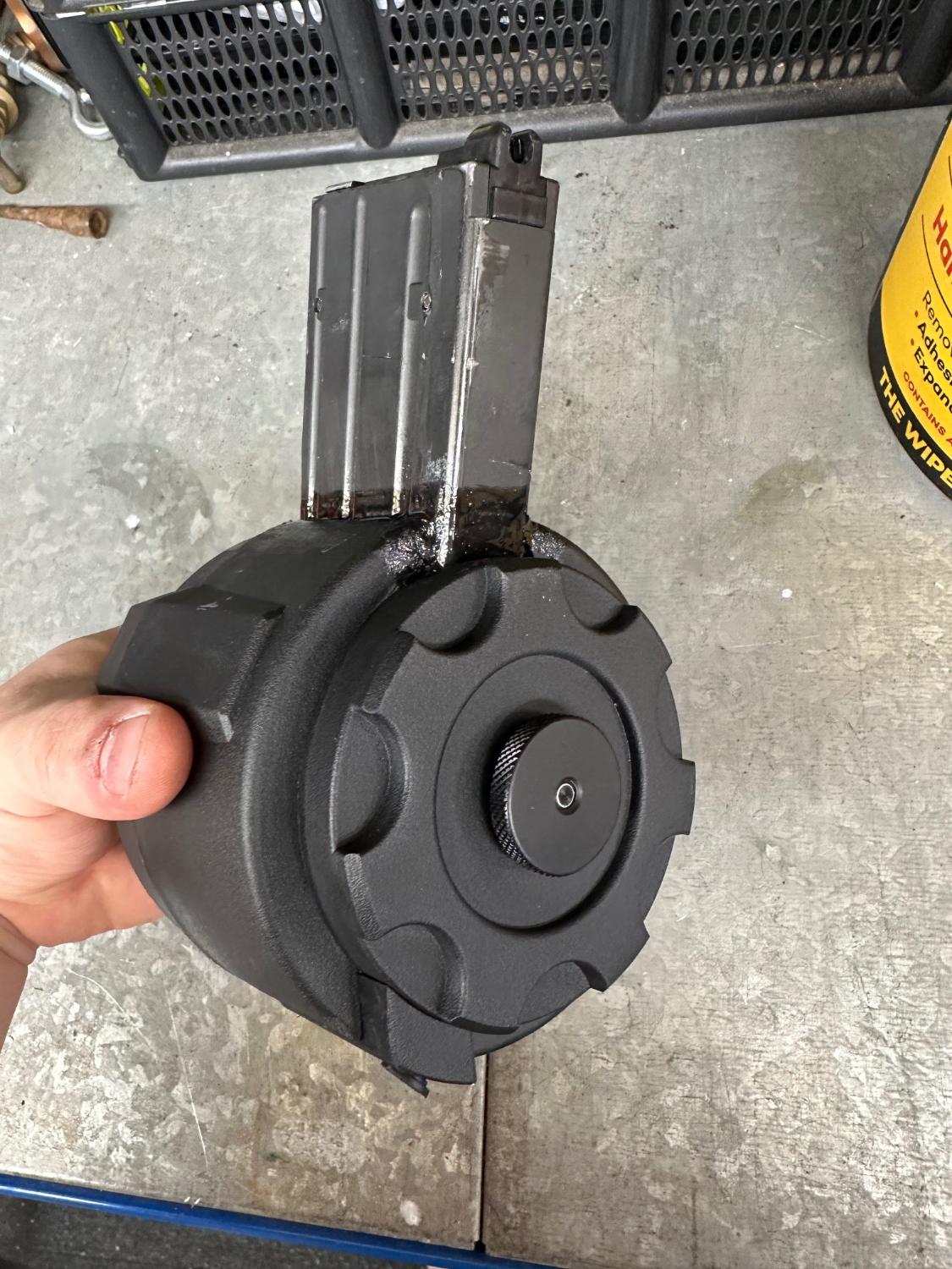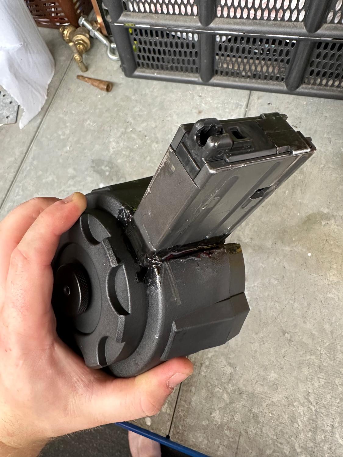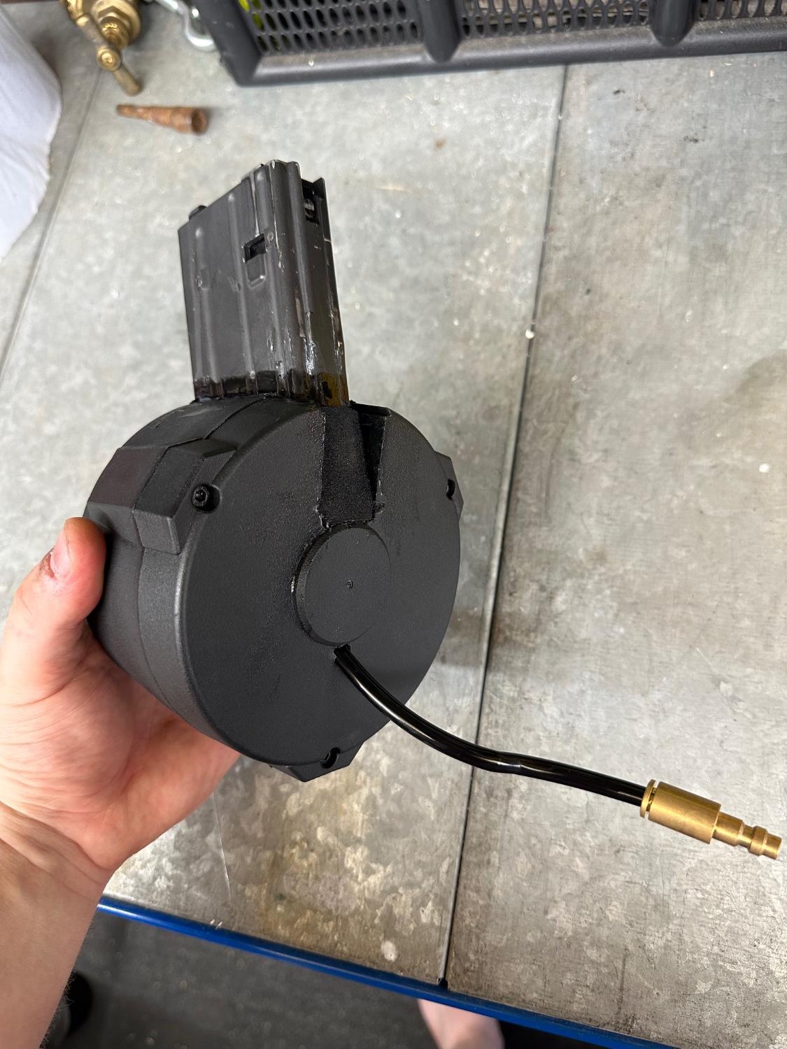 Own an MWS? Own a line tank and a reg? Want to combine the 2 together? Thought not, but anyway here I present a custom MWS HPA drum mag, by far not the prettiest thing in the world, but with 1500 rounds and a line running out the back, it gets the job done, this was not built by me, but I have ran several game days and it worked a treat, LF £100 collected DY4 or £110 posted, thanks!