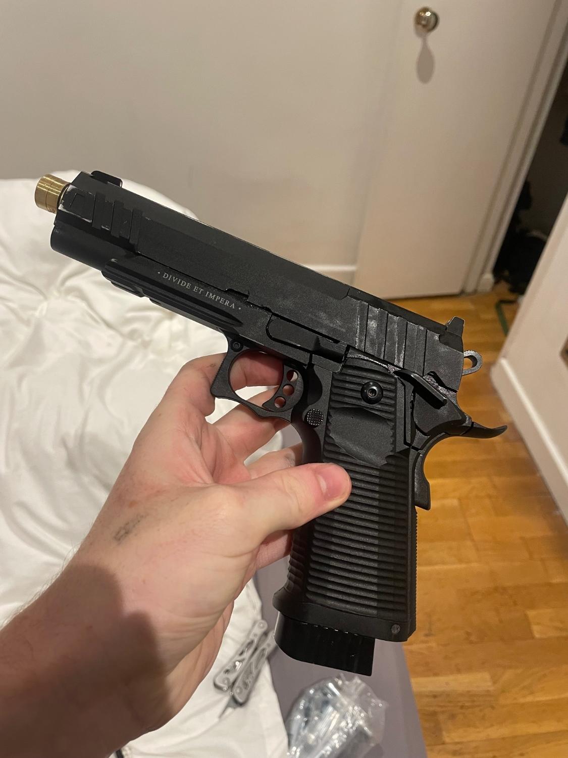Hi for sale I have my secutor ludus co2, as you can see it is a little rough around the edges but functions and runs well! Currently fitted with a power down nozzle to keep it CQB legal (around 300fps) original full power nozzle will come with the sale. 3 hi cap mags included all gas tight. Any questions please feel free to ask! (As far as swaps are concerned I fancy a P226 or maybe a Glock but any swap offers considered) thanks!