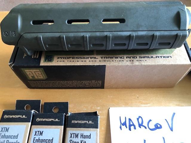 Original Magpul and PTS OD accessories Stock, handguard, rail panels, mbus sights