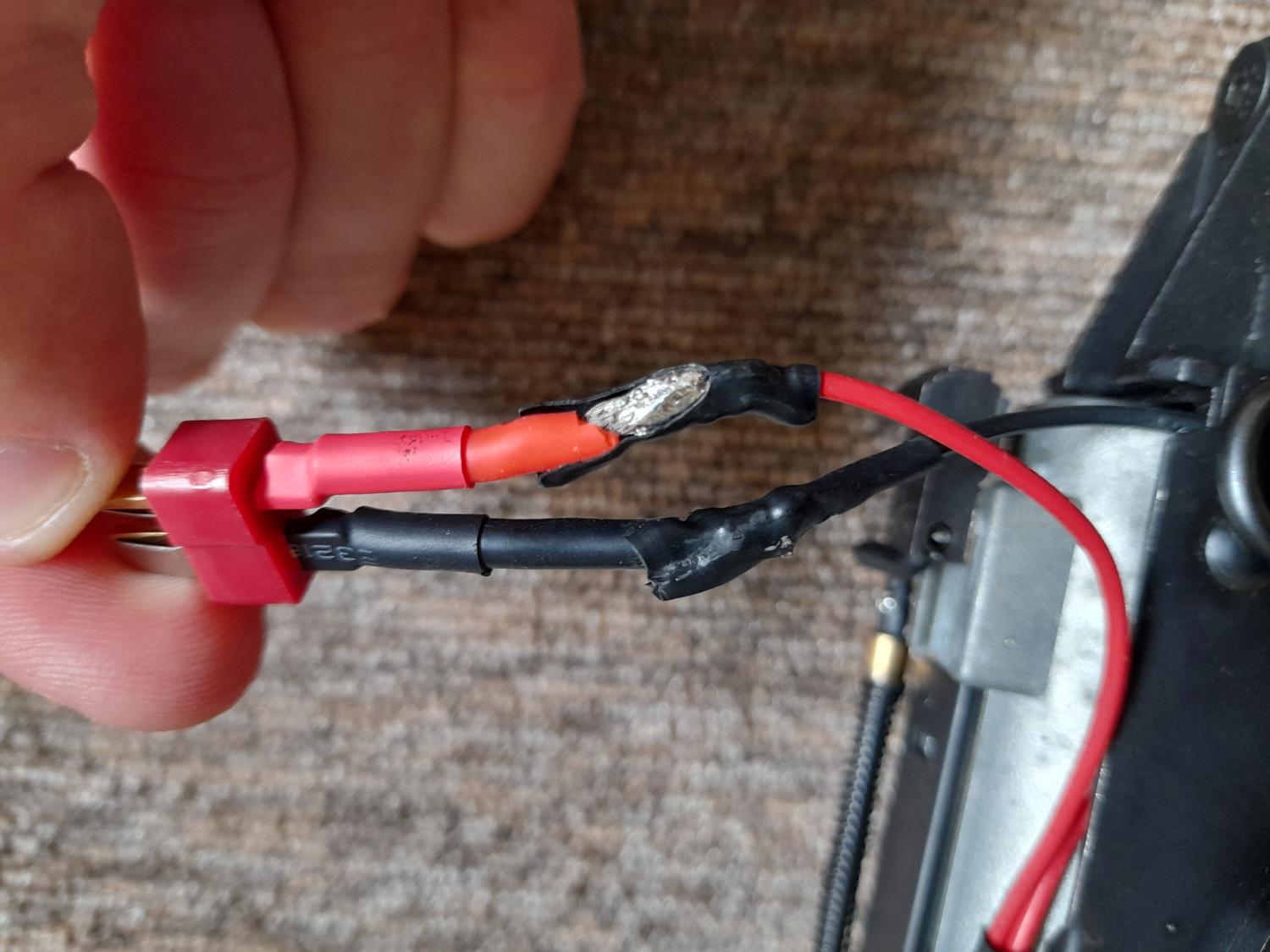I ALSO ADDED A DEANS CONNECTION, WITH MY OWN DODGY SOLDERING. I HAVE UNCOVERED THE HEAT SHRINK TO SHOW MY LACK OF SKILLS.