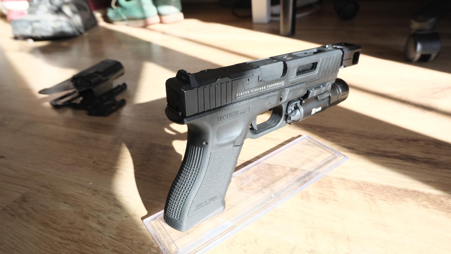 Up for sale here is a really nice Secutor Gladius Magna VI with three gas tight mags, a Molle holster, SRU compensator, original thread cover & a somewhat dodgy Nuprol Pistol torch (The pressure switch is dodgy meaning that the light is very weak but really looks the part)