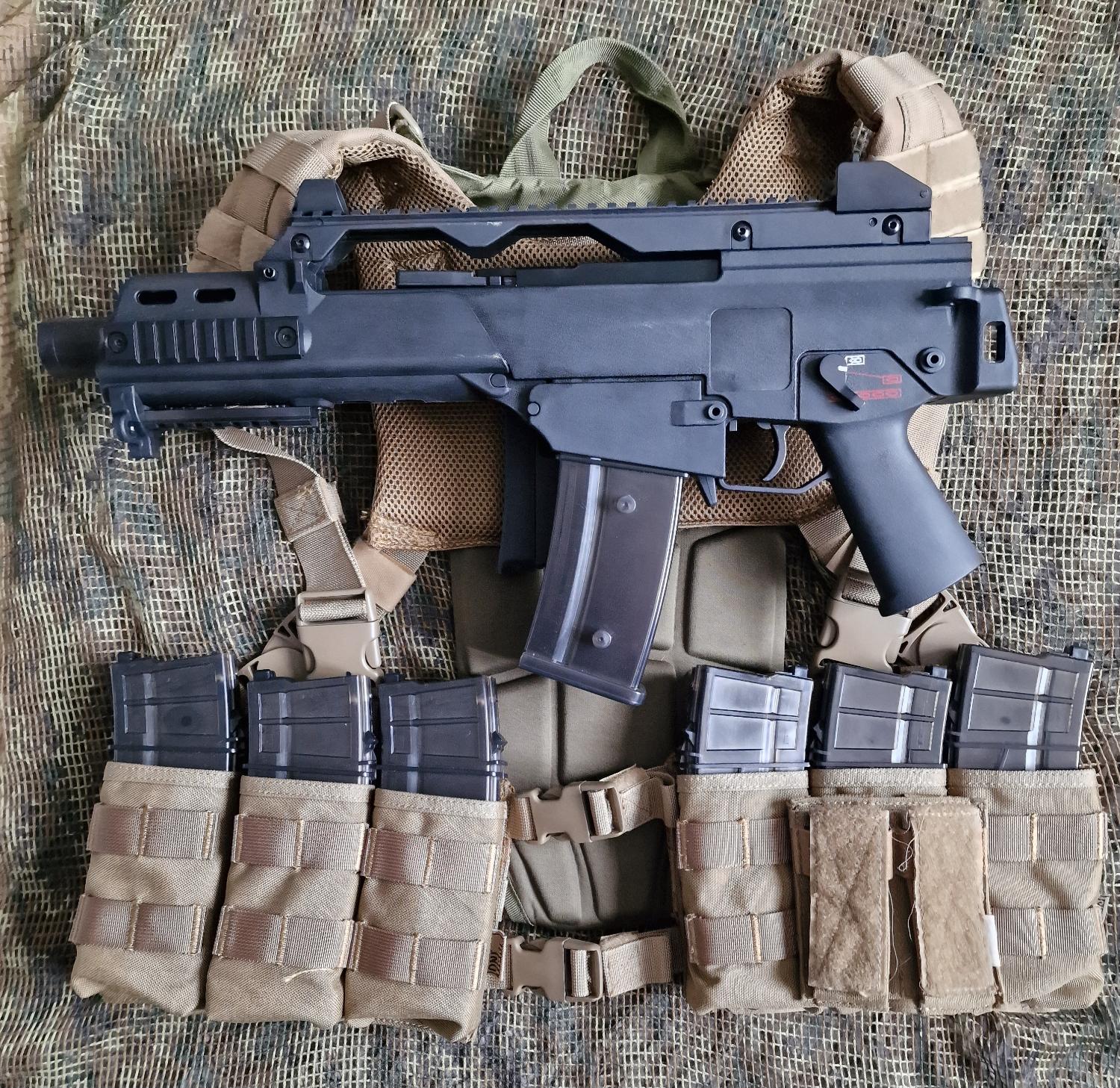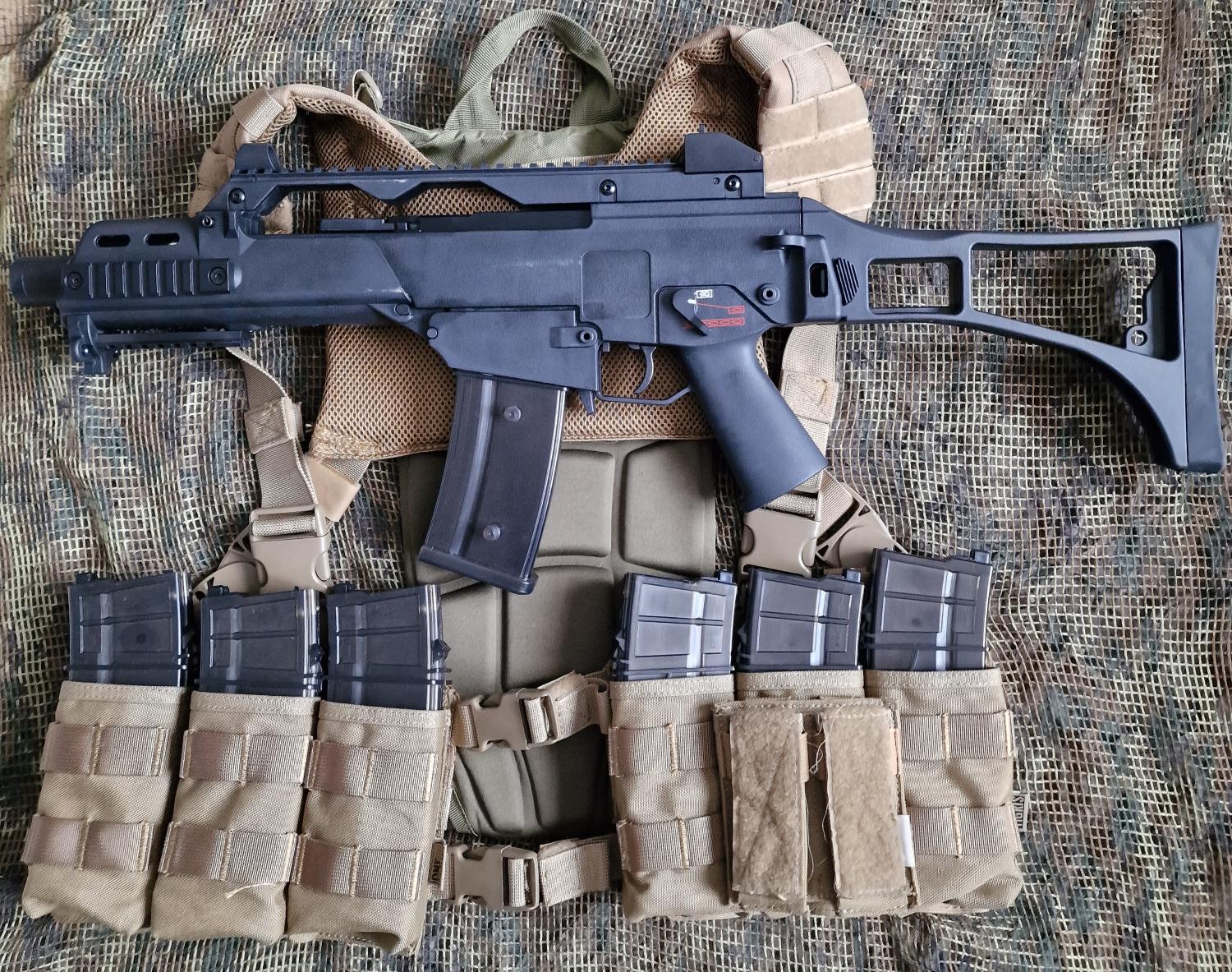 Purchased brand new on a whim as a backup but it doesn't really click with me. Only used once and it performed really well just don't like the G36 ergonomics. Comes with NPAS fitted (currently set at 310 on a .2 for CQB) maple leaf nub and bucking with 7 leak free mags and 2 x triple mag pouches on split front chest rig.