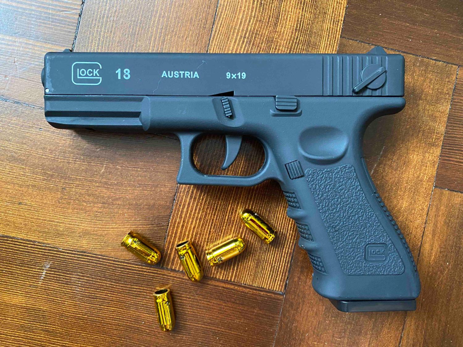 - Every time you pull the trigger, the built-in laser beams a red laser from the barrel, the pistol blowback and the casing ejects