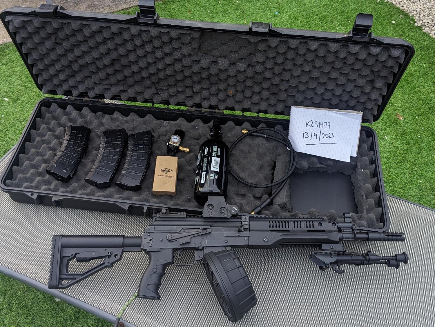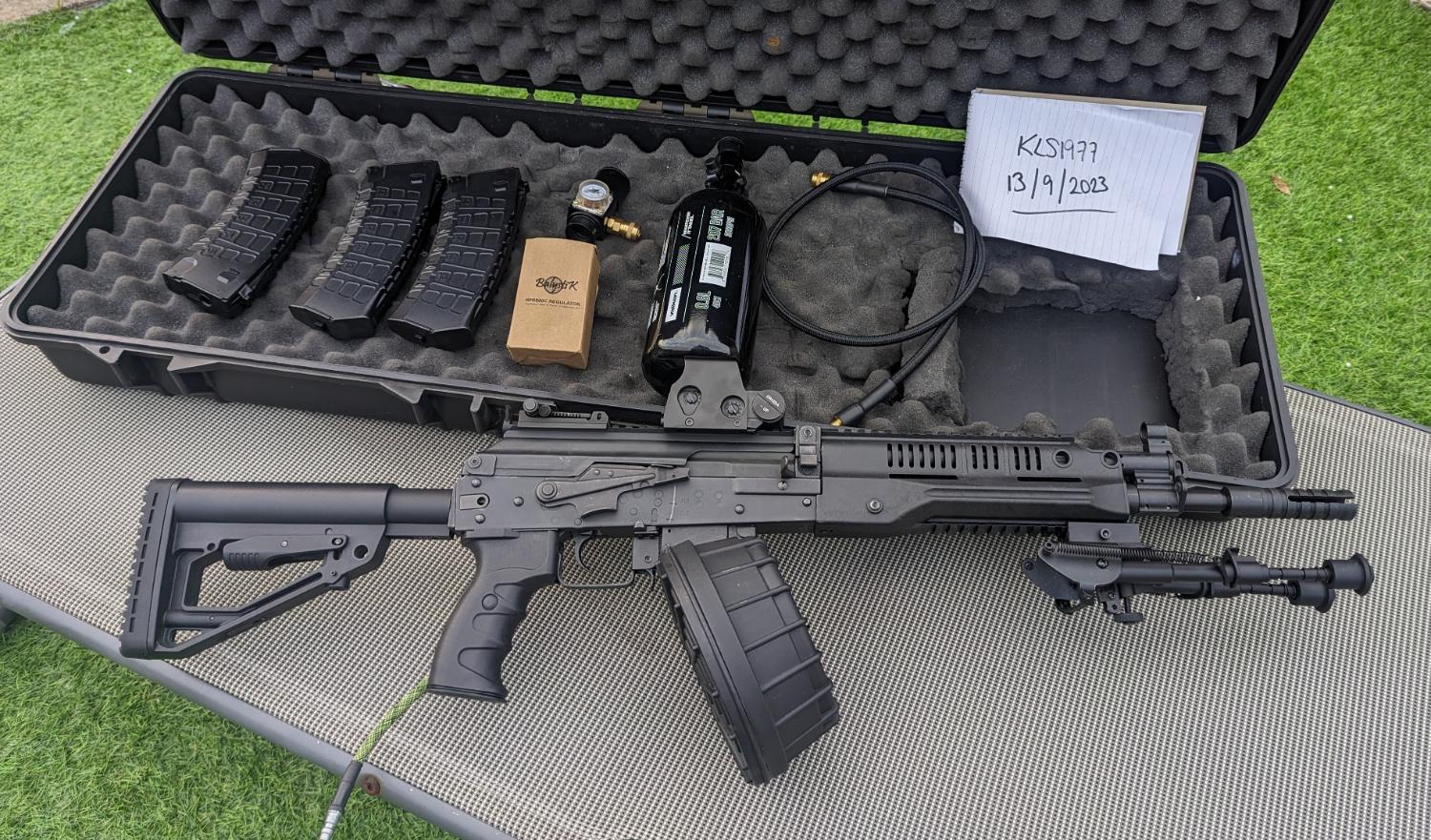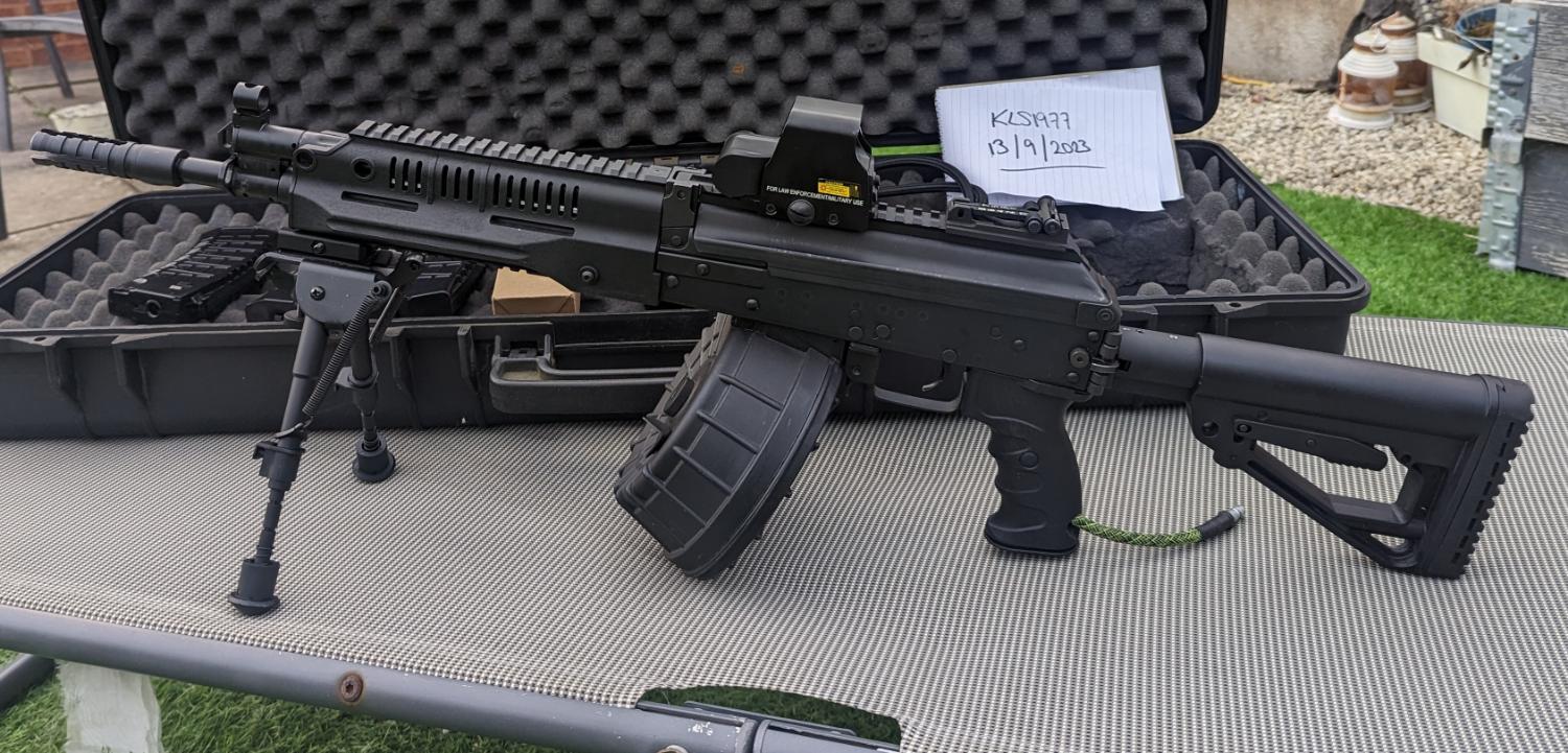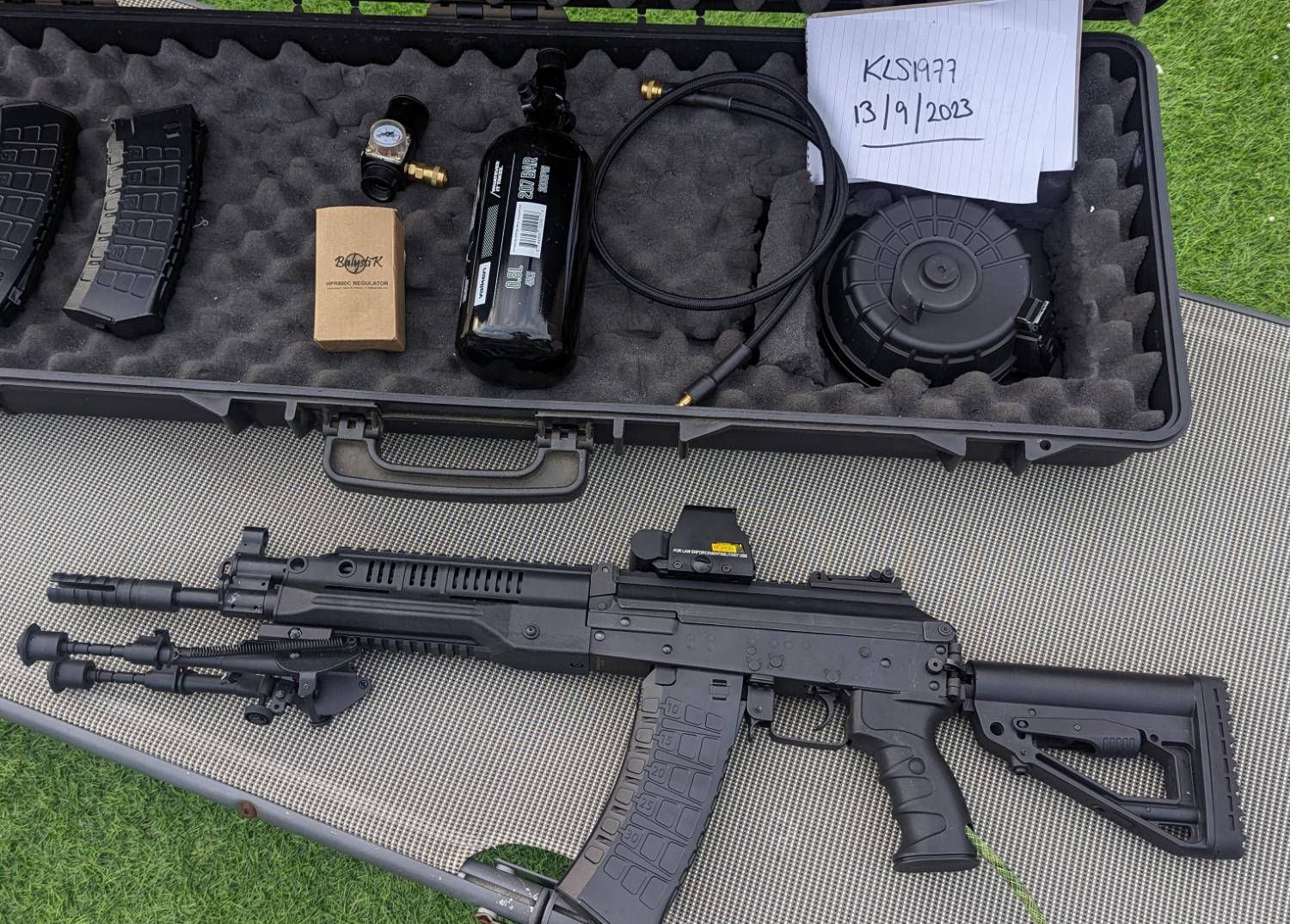 Comes with all u see .lct Drum mag . Three midcaps . Holo red dot . .