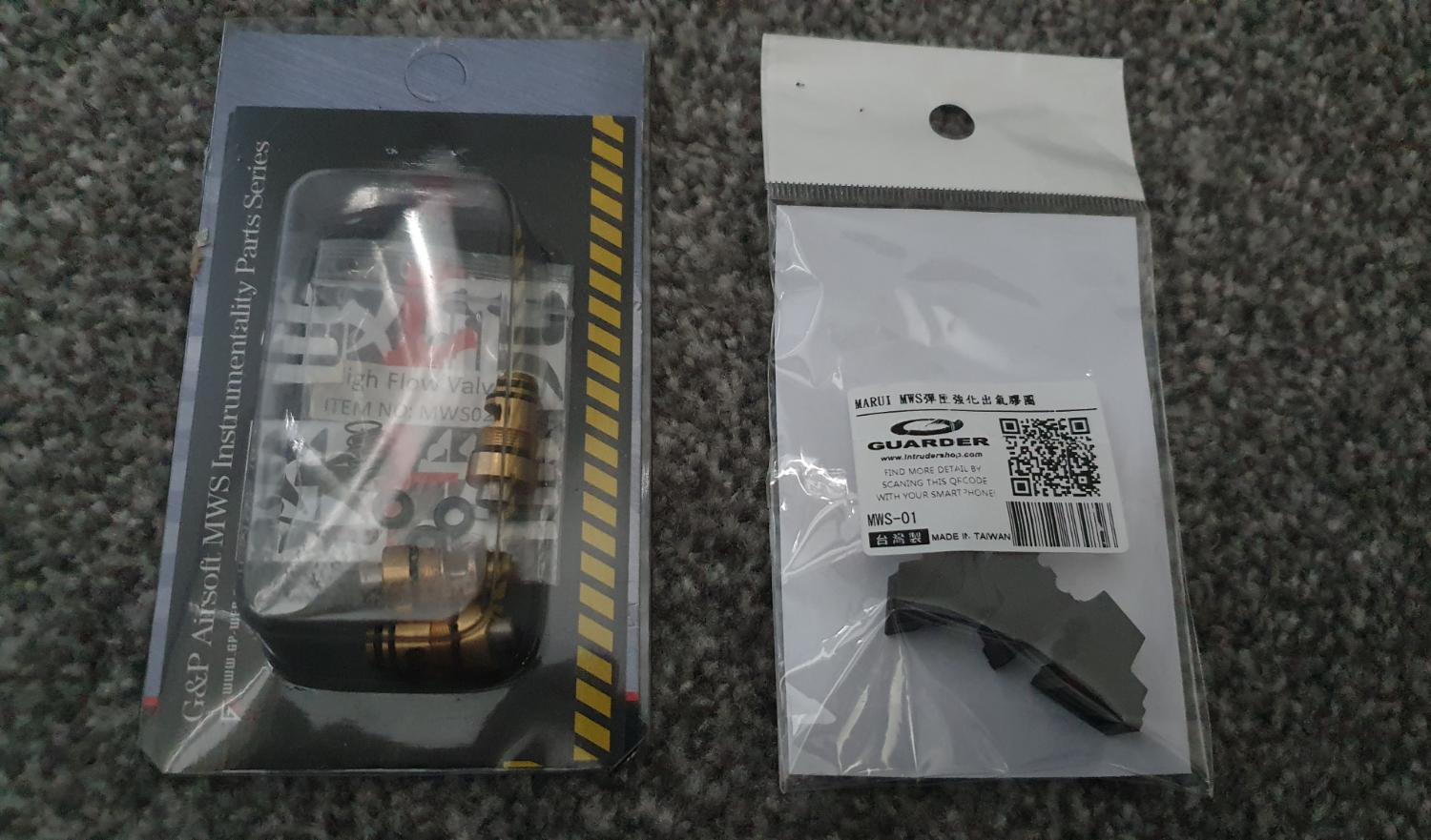 3x Brand new G&P high flow magazine valves and 3x Brand new Guarder enhanced gas routers for Tokyo Marui MWS compatible magazines.